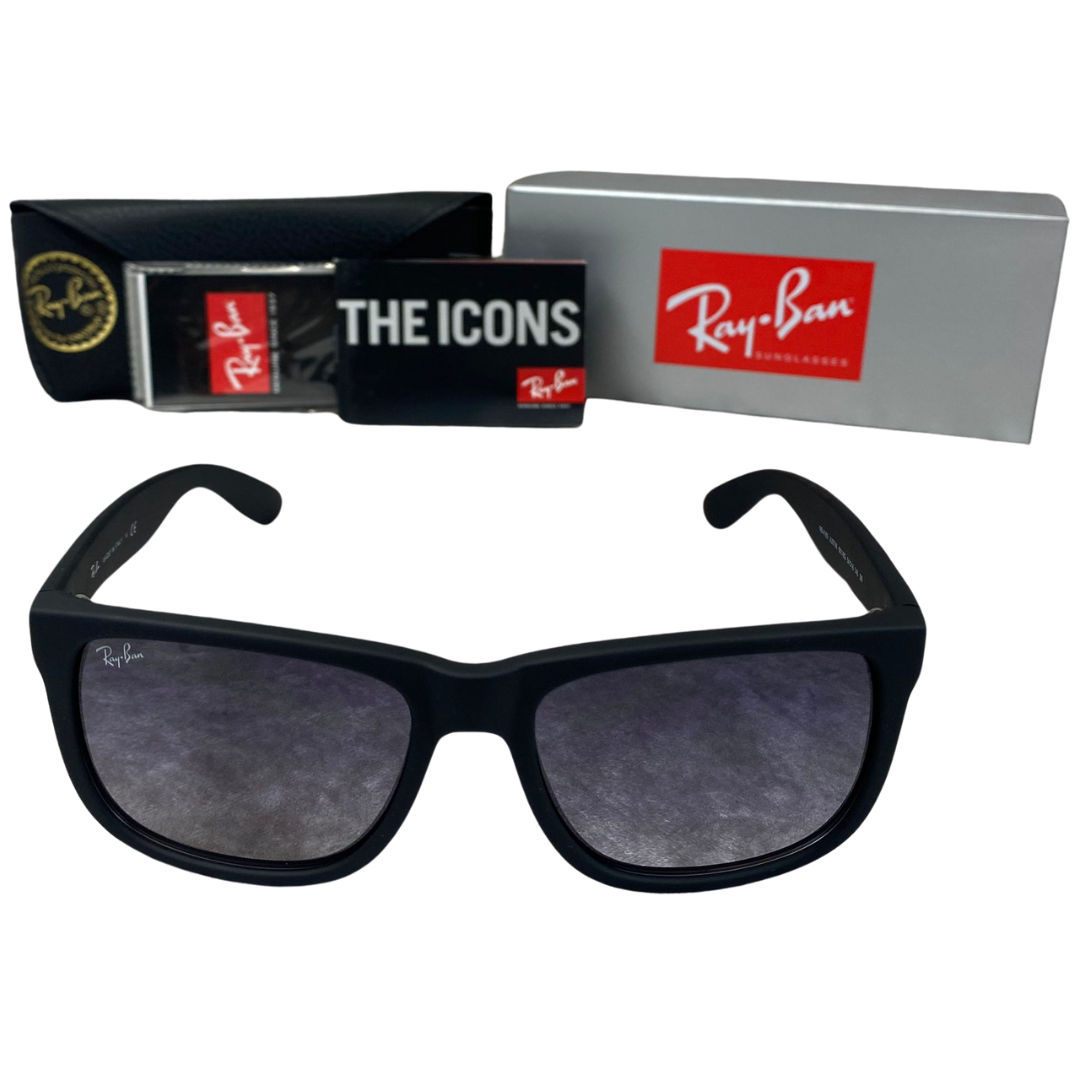 The Ray-Ban RB4165 601/8G Black Sunglasses are the epitome of contemporary style and comfort, perfect for fashion-forward individuals. These brand new, unused sunglasses are delivered in their original packaging, ensuring they arrive in immaculate condition. The RB4165 model, also known as the Justin, features a bold, matte black frame that offers a sleek and modern aesthetic.