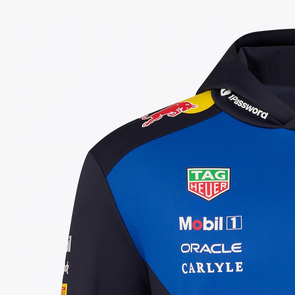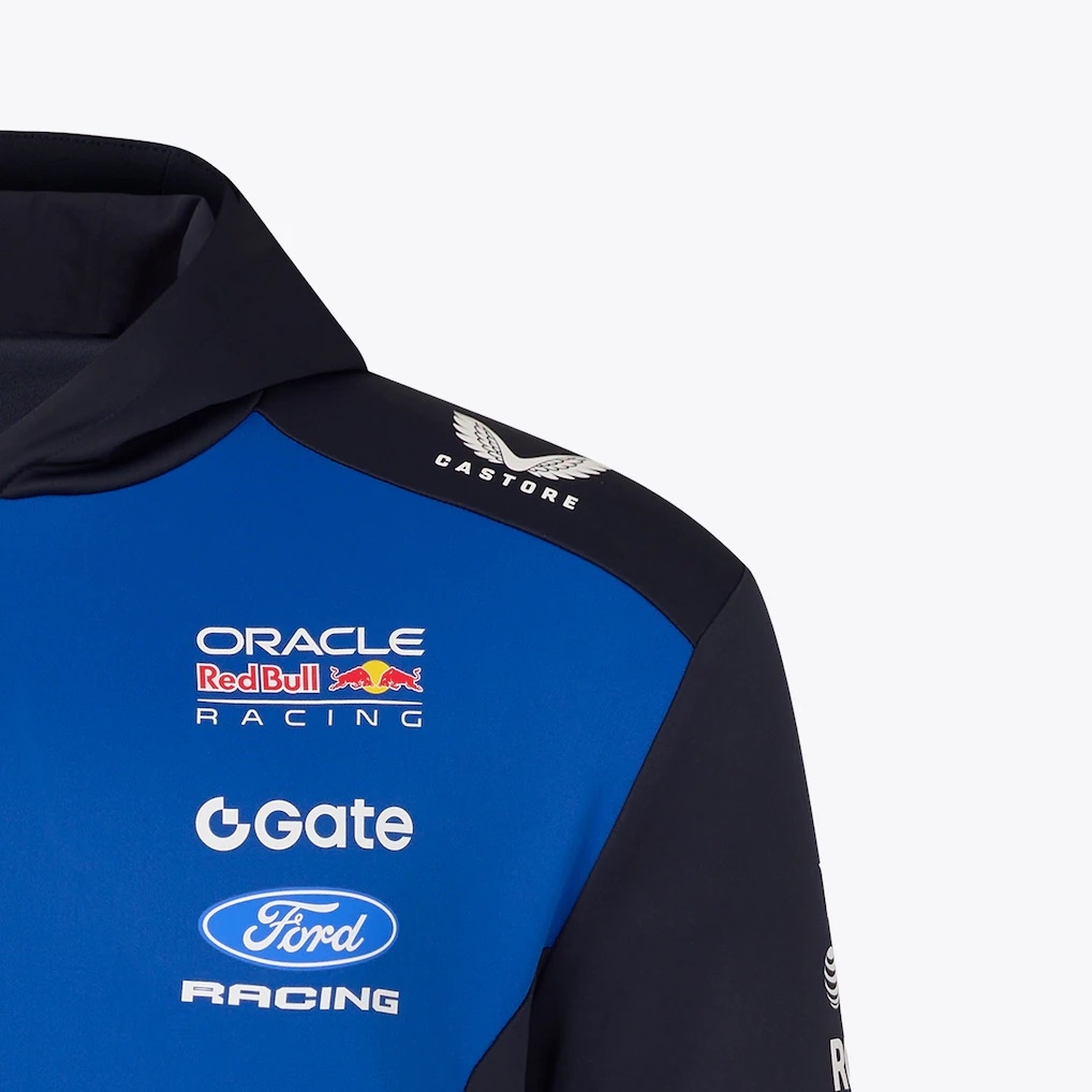 A brand new Red Bull Racing Teamline Overhead Hoodie is an official piece of teamwear, styled to replicate the apparel worn by Oracle Red Bull Racing personnel during the Formula One season. Finished in the instantly recognisable blue and navy colourway, it features prominent team and sponsor branding across the chest, shoulders and sleeves, delivering a clean, authentic motorsport look with strong visual appeal.