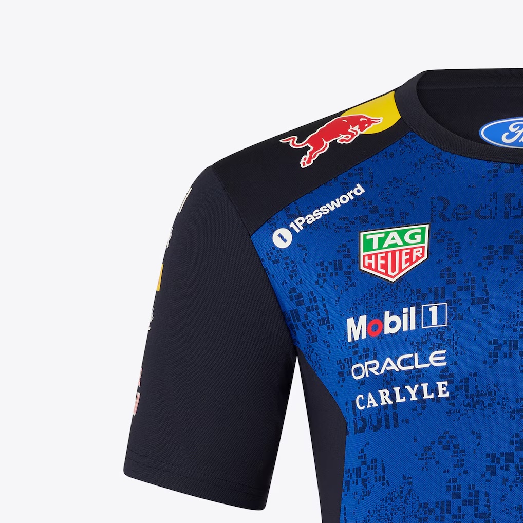 A brand new Red Bull Racing Teamline Set Up T-Shirt is an authentic piece of official teamwear, designed to mirror the exact style worn by the Oracle Red Bull Racing crew throughout the Formula One season. Finished in the striking blue and navy colourway, it features a modern digital camo pattern with prominent team and sponsor branding across the chest, shoulders and sleeves, delivering an unmistakable motorsport presence.
