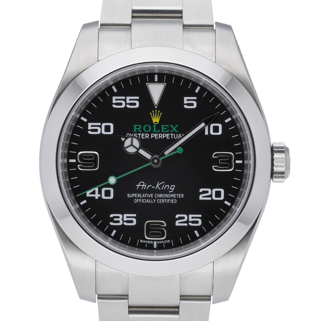 A Rolex Air-King Watch, Stainless Steel on a Black Dial