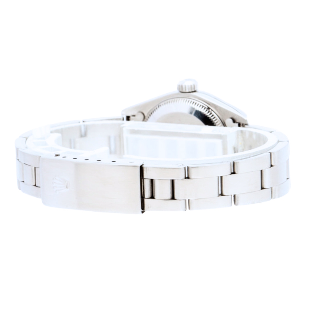 The fluted screw-down crown and Oyster case ensure water resistance and durability, while the matching stainless steel bracelet provides comfort and security with a folding clasp. Its design is ideally suited for both daily wear and more formal occasions, appealing to those who appreciate understated elegance.