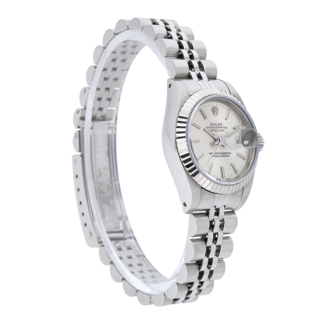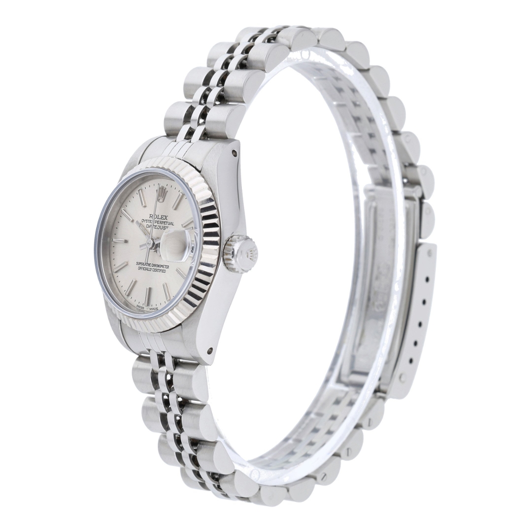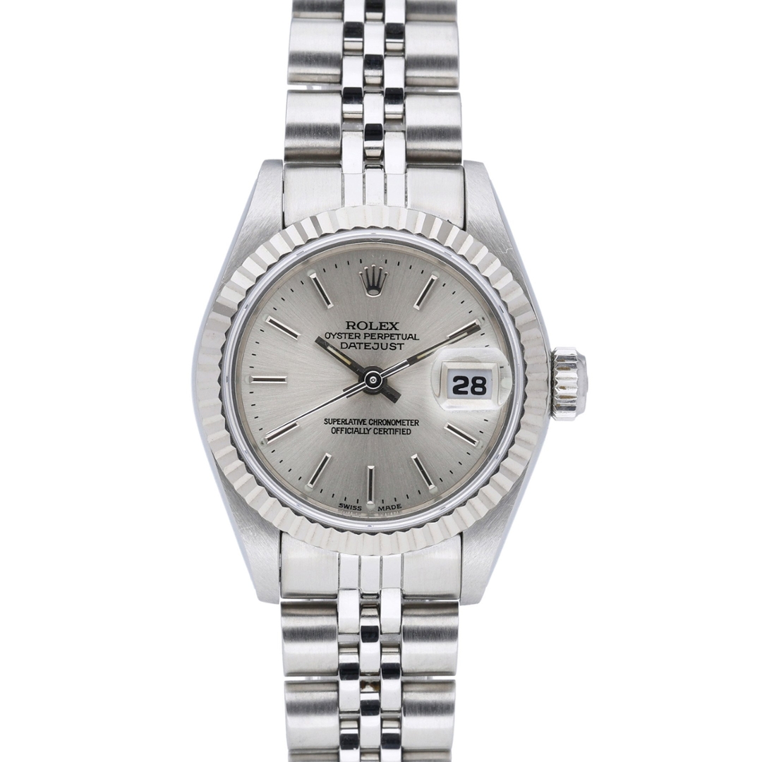 A Rolex Datejust 26 Watch, Stainless Steel with an 18ct White Gold Fluted Bezel on a Silver Dial