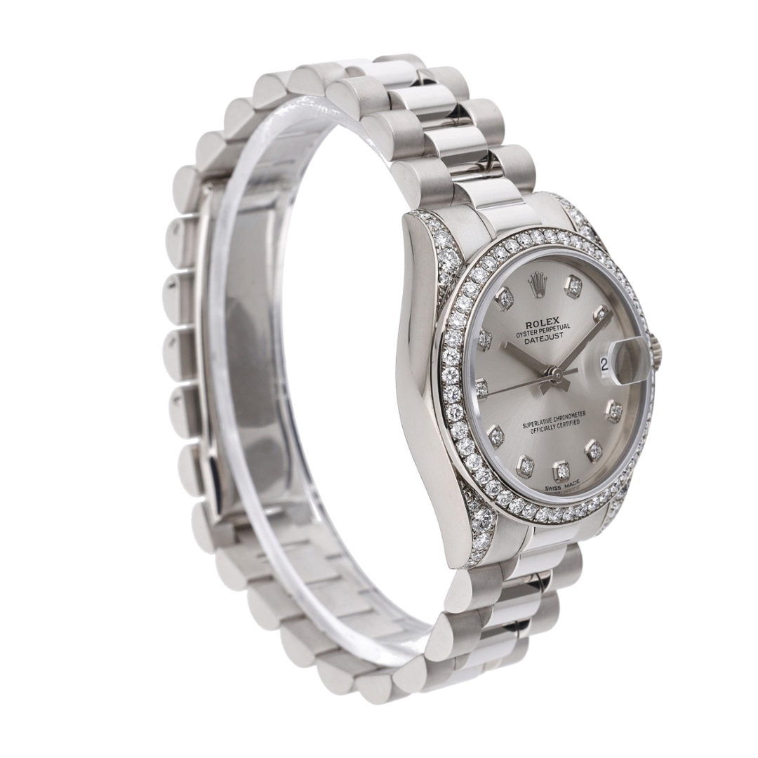 A Rolex Datejust 31 Watch, Full 18ct White Gold with a Diamond Bezel & Lugs on a Silver Dial with Original Rolex Diamond Numerals and a President Bracelet