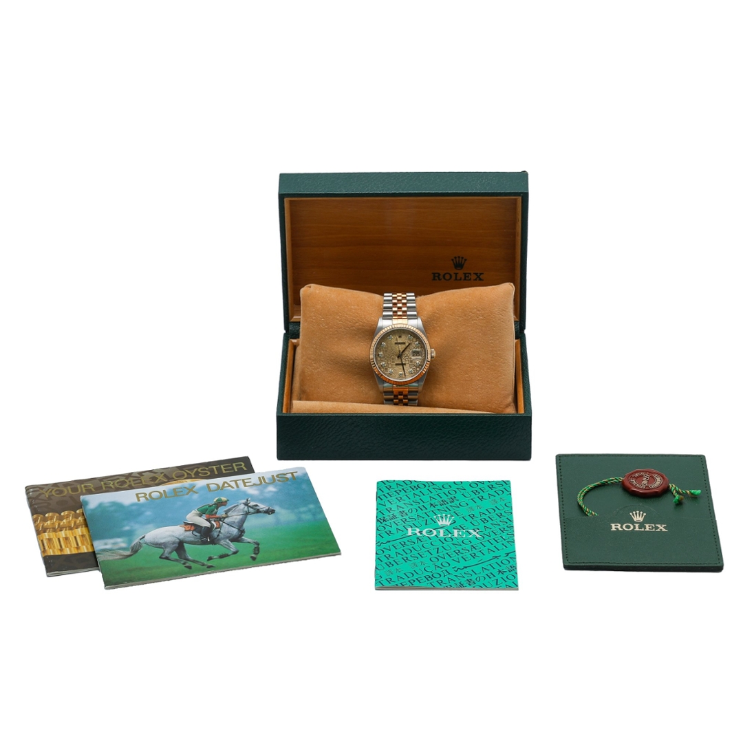 A Bi-Metal Rolex Datejust 36 Watch, Stainless Steel & 18ct Yellow Gold with an 18ct Yellow Gold Fluted Bezel on a Champagne Jubilee Dial with Original Rolex Diamond Numerals