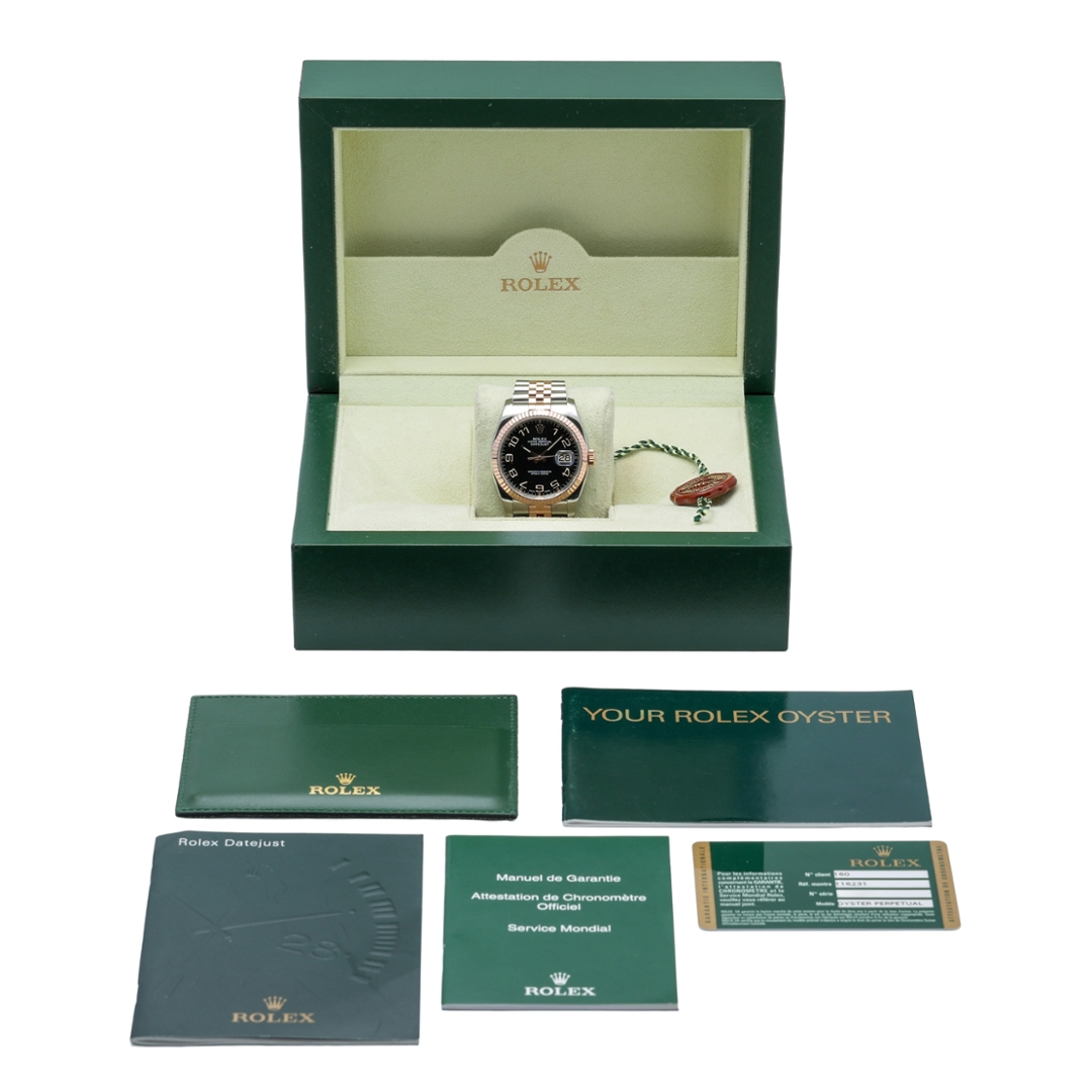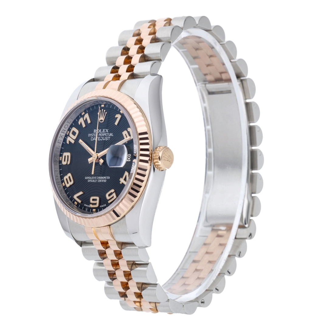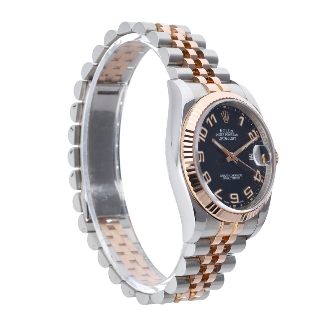 A Bi-Metal Rolex Datejust 36 Watch, Stainless Steel & 18ct Rose Gold with an 18ct Rose Gold Fluted Bezel on a Black Concentric Dial