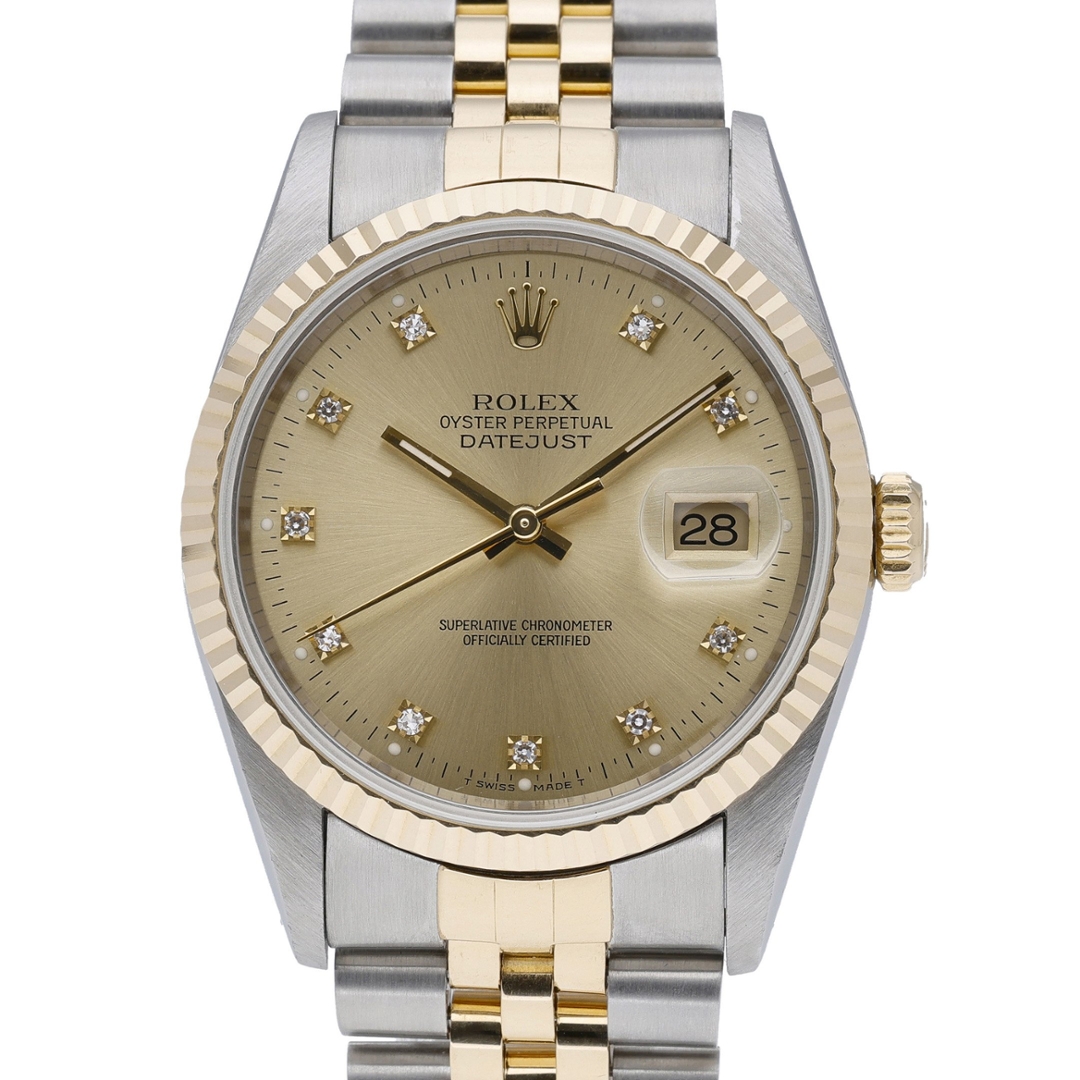 A Bi-Metal Rolex Datejust 36 Watch, Stainless Steel & 18ct Yellow Gold on a Champagne Dial with Original Rolex Diamond Numerals