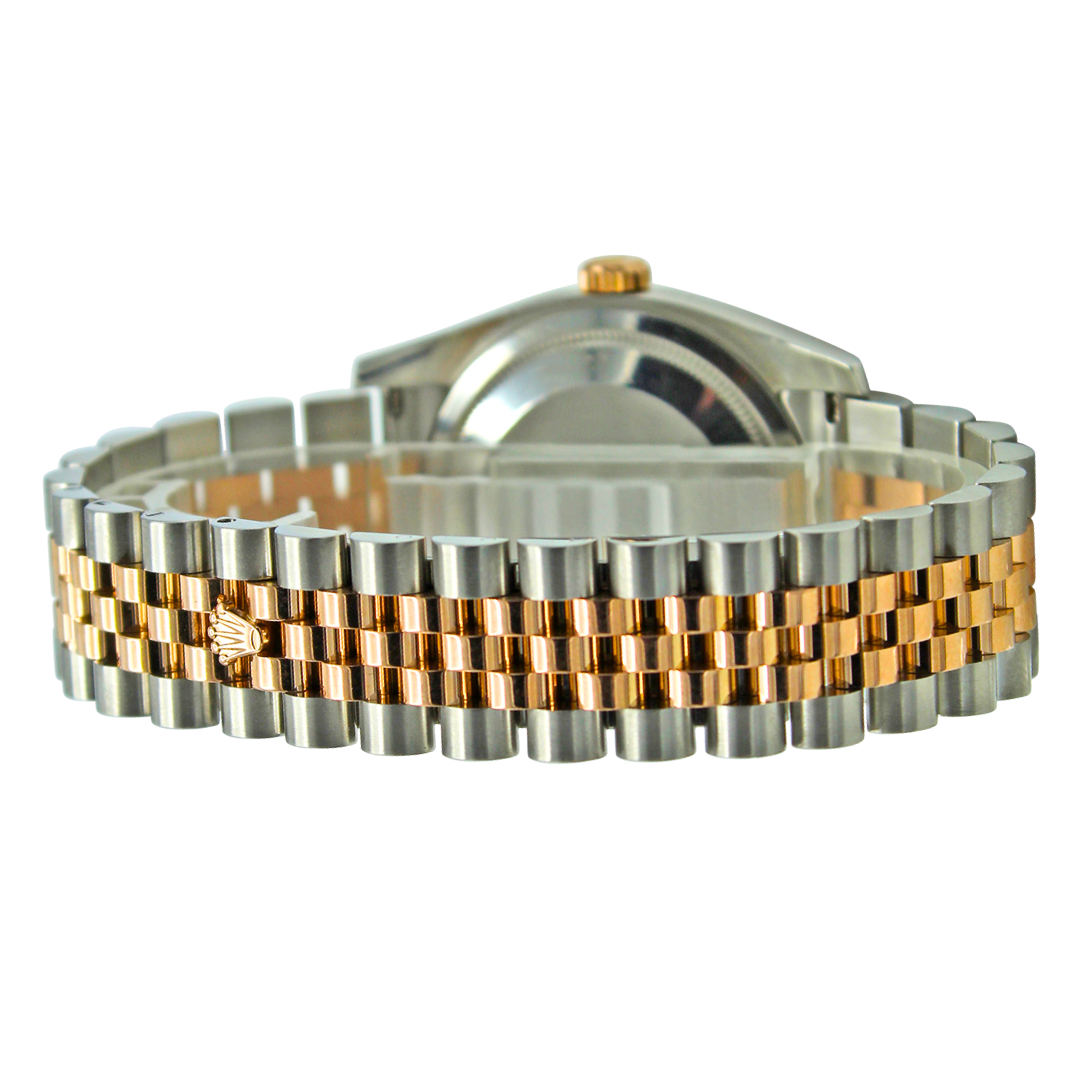 Powered by the dependable Rolex calibre 3135 automatic movement, this model is celebrated for its reliability, smooth timekeeping and robust construction. The classic combination of the Everose Jubilee bracelet centre links and Oystersteel outer links gives the watch a warm, elevated look while remaining highly wearable. The date display with Cyclops magnification completes the unmistakable Datejust identity, offering clarity and practicality at a glance.
