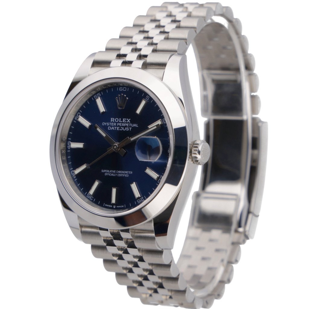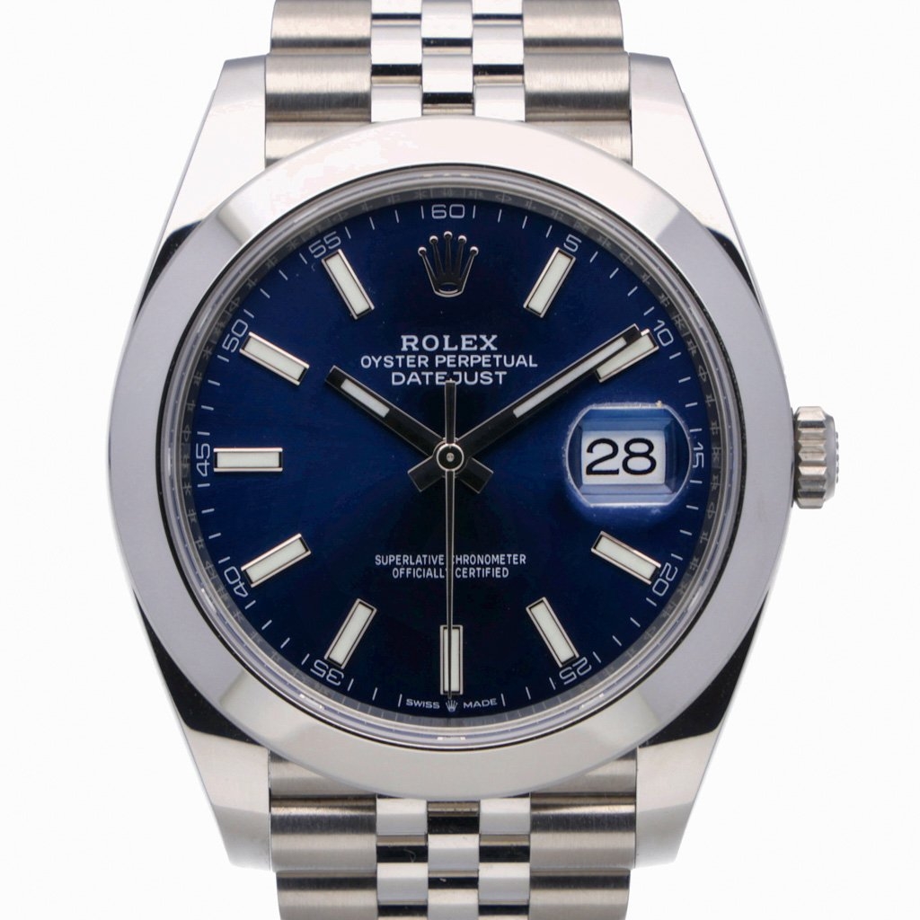 A Rolex Datejust 41 Watch, Stainless Steel on a Blue Dial.