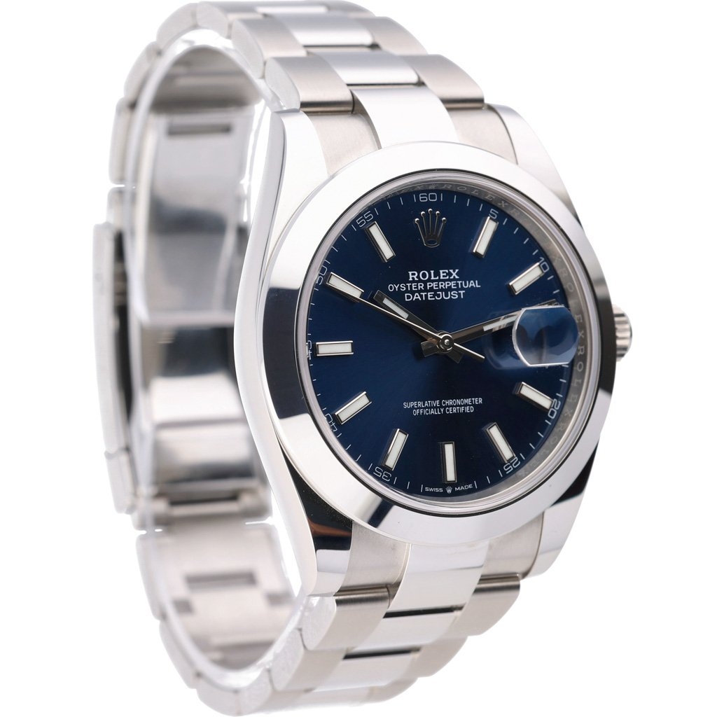 A Rolex Datejust 41 Watch, Stainless Steel on a Blue Dial.