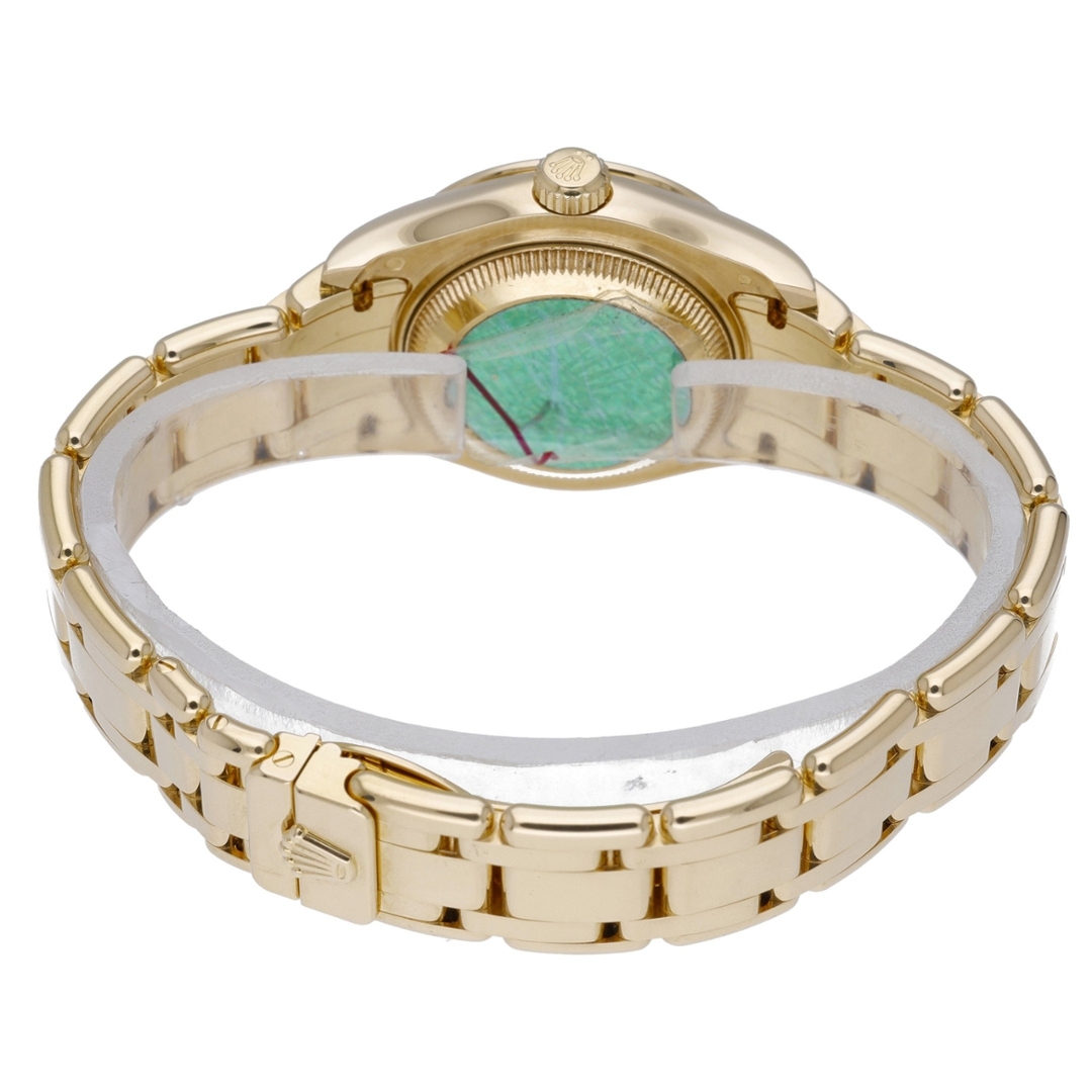 The 29mm case houses Rolex’s automatic movement, delivering the precision and reliability expected from the Pearlmaster collection. Its immaculate condition highlights how well this piece has been preserved — a truly elegant and prestigious choice for collectors seeking a refined gold Rolex with a strong jewellery aesthetic.