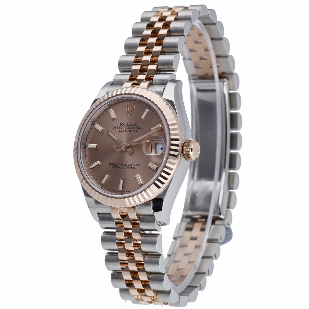 A Rolex Datejust 278271 is a refined example of modern watchmaking, combining Rolex’s renowned craftsmanship with a timeless bi-metal design. The 31mm Oyster case is crafted in robust stainless steel and 18ct rose gold, creating a striking contrast that is both elegant and versatile.