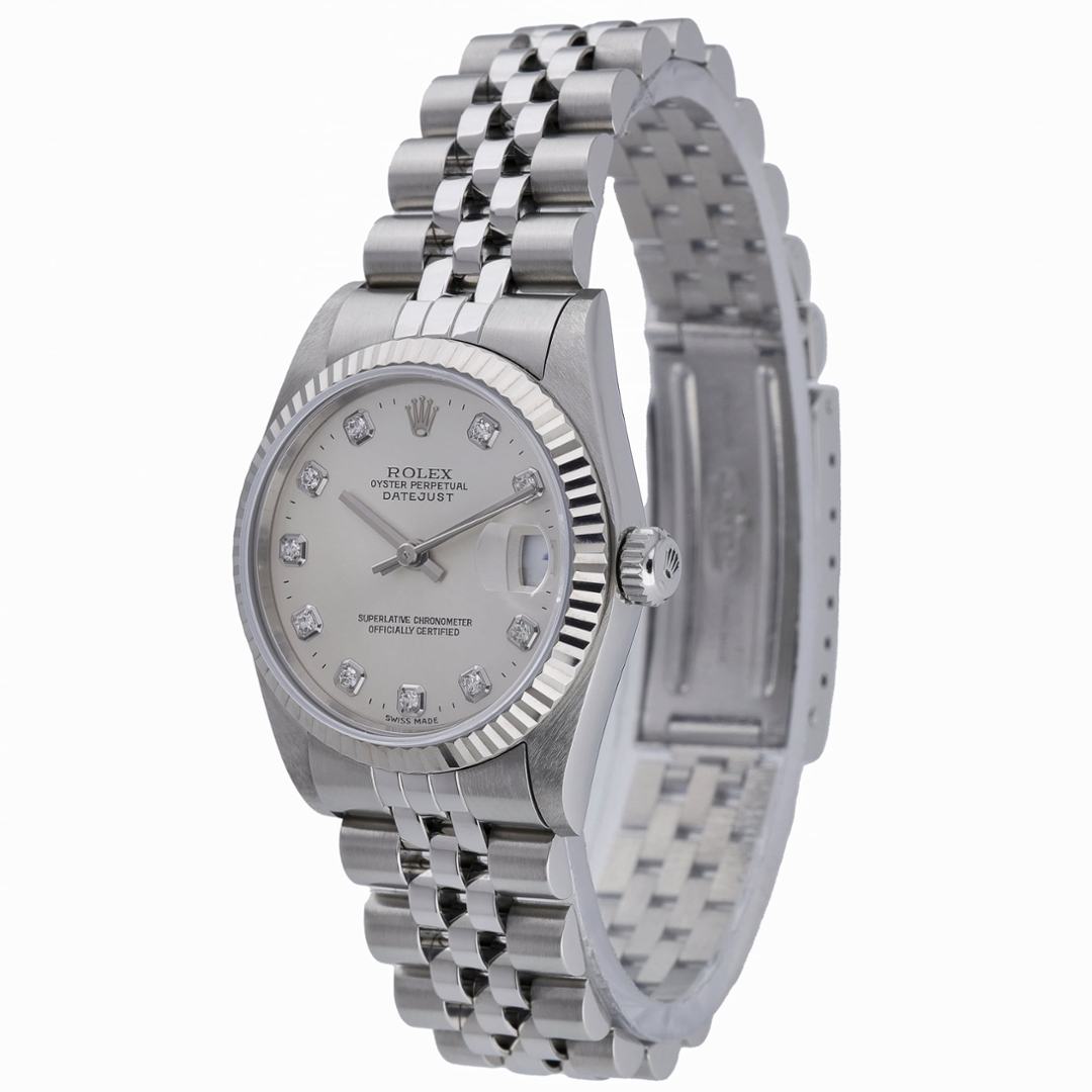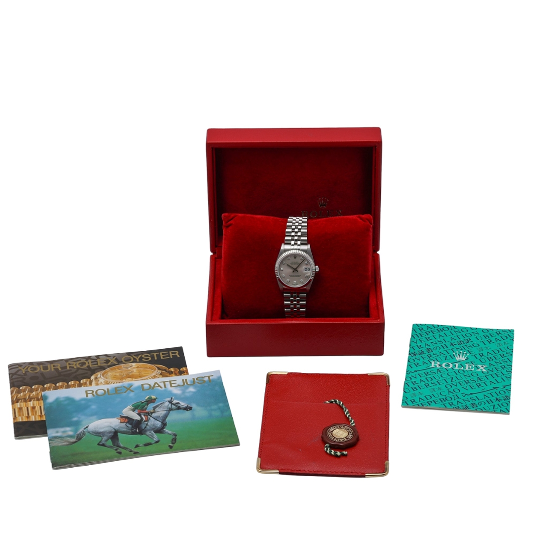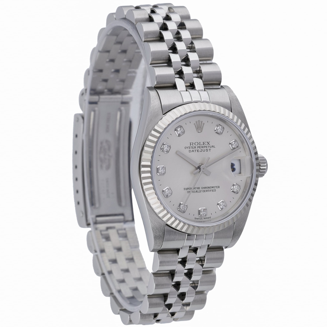 A Rolex Datejust 31 Watch, Stainless Steel with an 18ct White Gold Bezel on a Silver Dial with Original Rolex Diamond Numerals