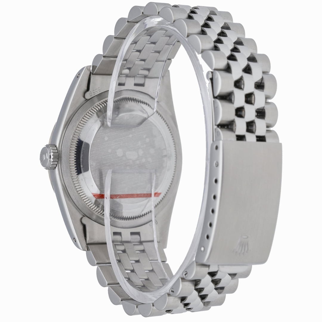 A Rolex Datejust 16234 presented in stainless steel, complemented by an 18ct white gold fluted bezel and a classic black dial. The 36mm Oyster case offers perfectly balanced proportions, with applied hour markers and the signature Cyclops date window at three o’clock, delivering immediate legibility and enduring elegance. This reference captures the pure, timeless aesthetic that has defined the Datejust line for generations.