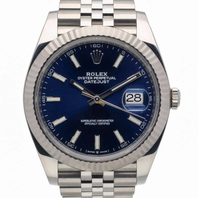 This Rolex Datejust reference 126200 is a modern 36mm example that perfectly balances heritage proportions with contemporary refinement. Crafted in stainless steel, it features a smooth bezel and the classic Oyster bracelet, giving the watch a clean, understated profile. The rich blue dial adds depth and versatility, shifting subtly in different light while remaining timeless and easy to wear across both formal and casual settings.