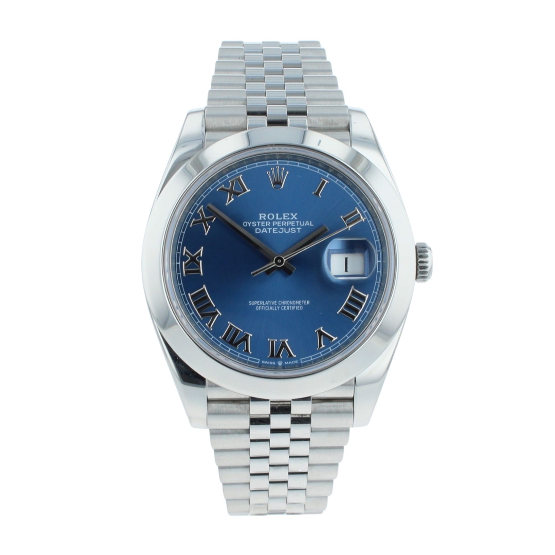 A Rolex Datejust 41 Watch, Stainless Steel on a Blue Dial.