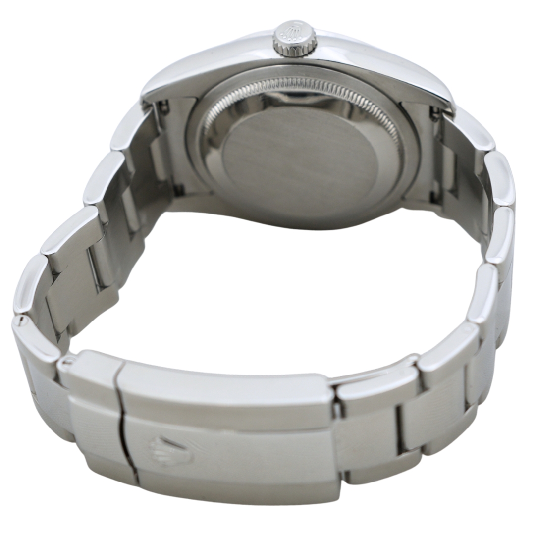 The Oyster bracelet maintains a balanced and robust profile. The date aperture at 3 o’clock is magnified by the Cyclops lens, preserving the model’s signature identity. Powering the watch is the Rolex Calibre 3135 automatic movement, a chronometer-certified calibre known for long-term durability and precision.