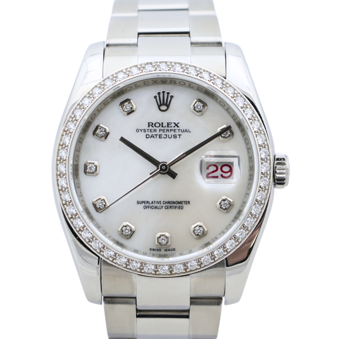 A Rolex Datejust Watch, Stainless Steel with an Afterset Diamond Bezel and an Afterset Mother of Pearl Diamond Dial