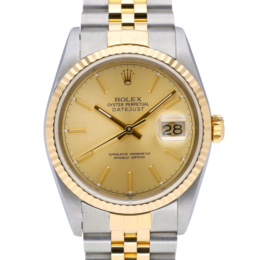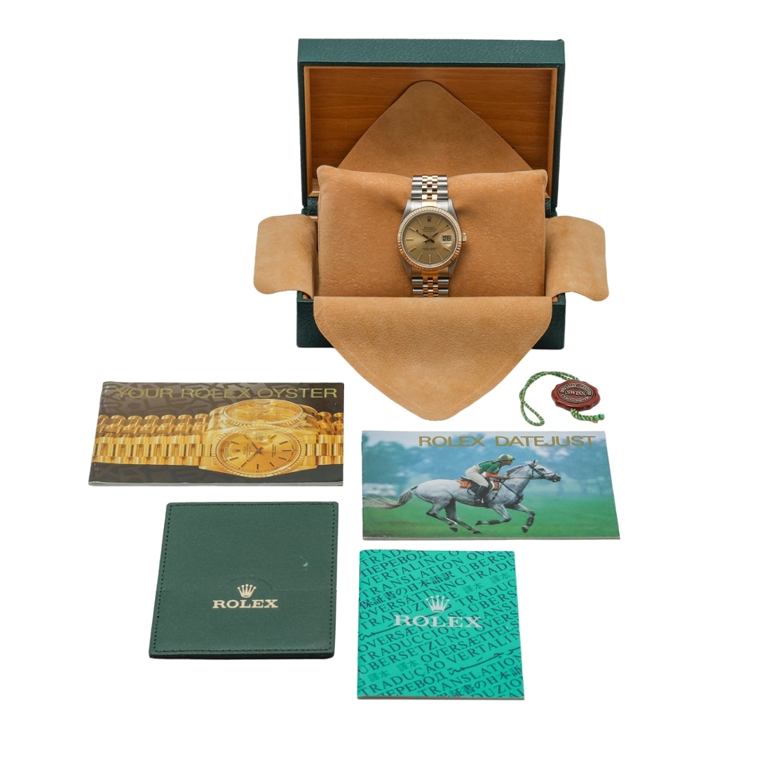 A Bi-Metal Rolex Datejust Watch, Stainless Steel & 18ct Yellow Gold on a Champagne Dial