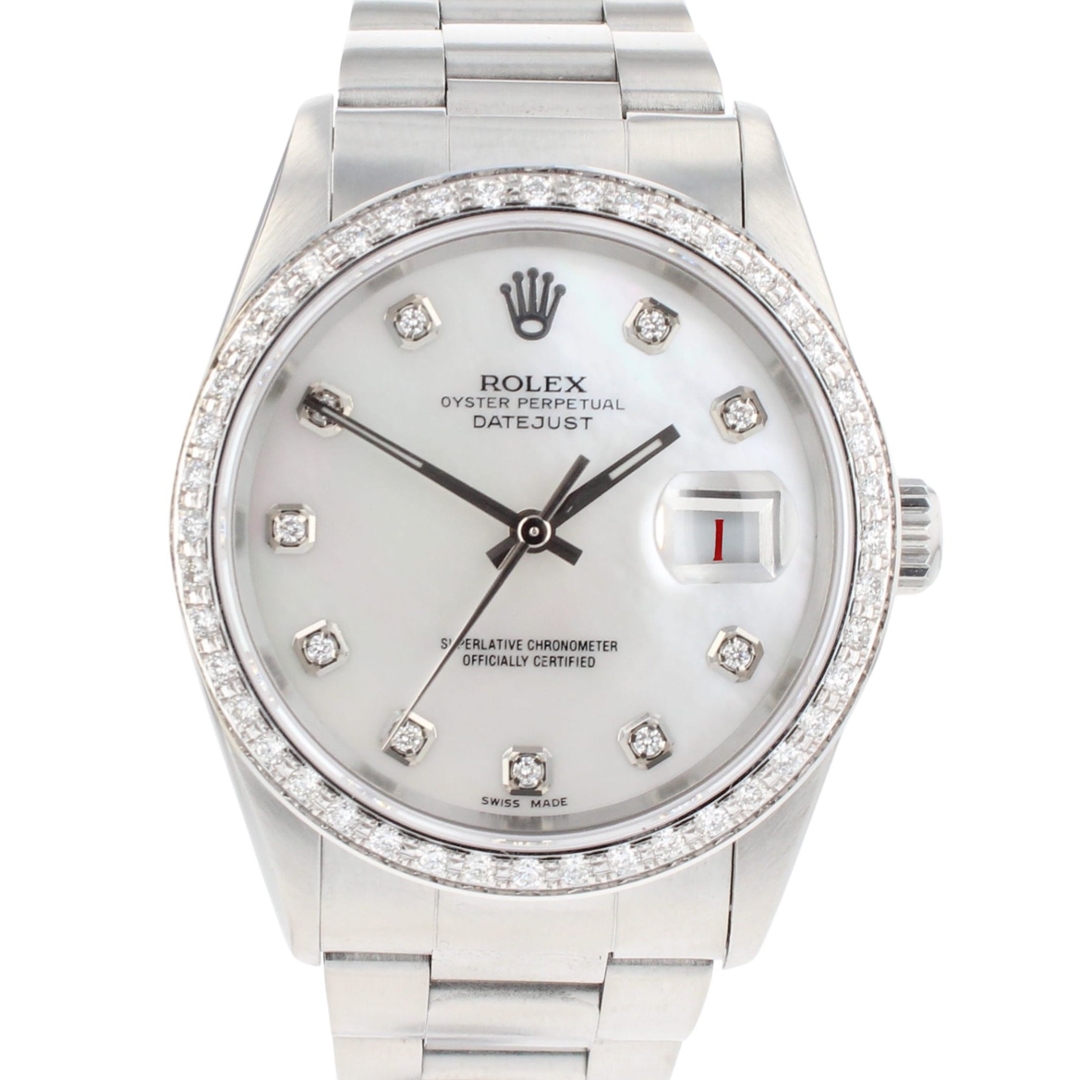 A Rolex Datejust Watch, Stainless Steel with an Afterset Diamond Bezel and an Afterset Mother of Pearl Diamond Dial