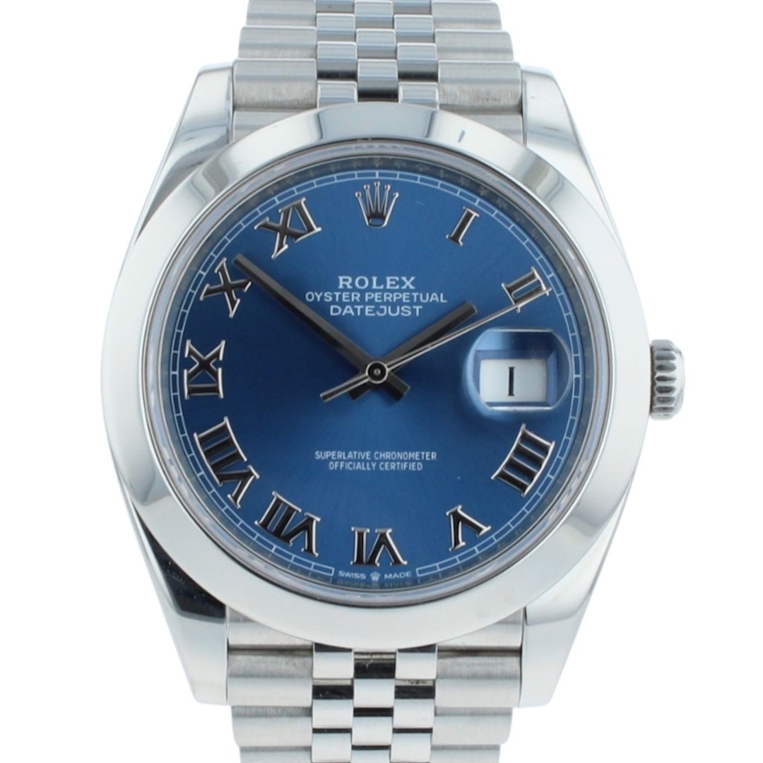 Supplied with its original box and full set of Rolex paperwork, and covered by a Rolex warranty until 2031, this example represents strong market appeal. Steel Datejust 41 references with blue dials remain consistently sought-after, supported by broad demand and reliable long-term value retention.