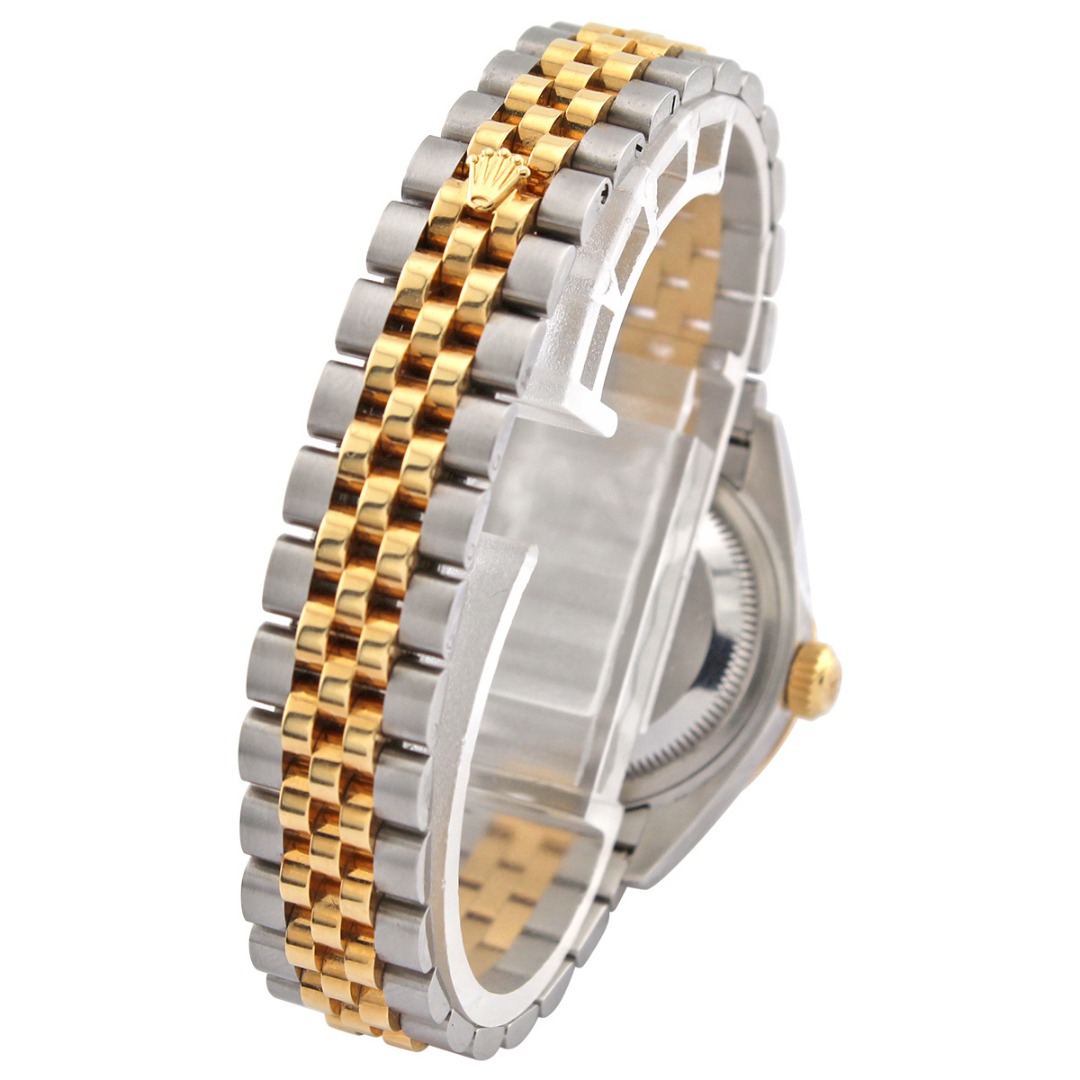 A Rolex Datejust 28 Watch, Stainless Steel with an 18ct Yellow Gold Diamond Bezel on a White Mother of Pearl Dial