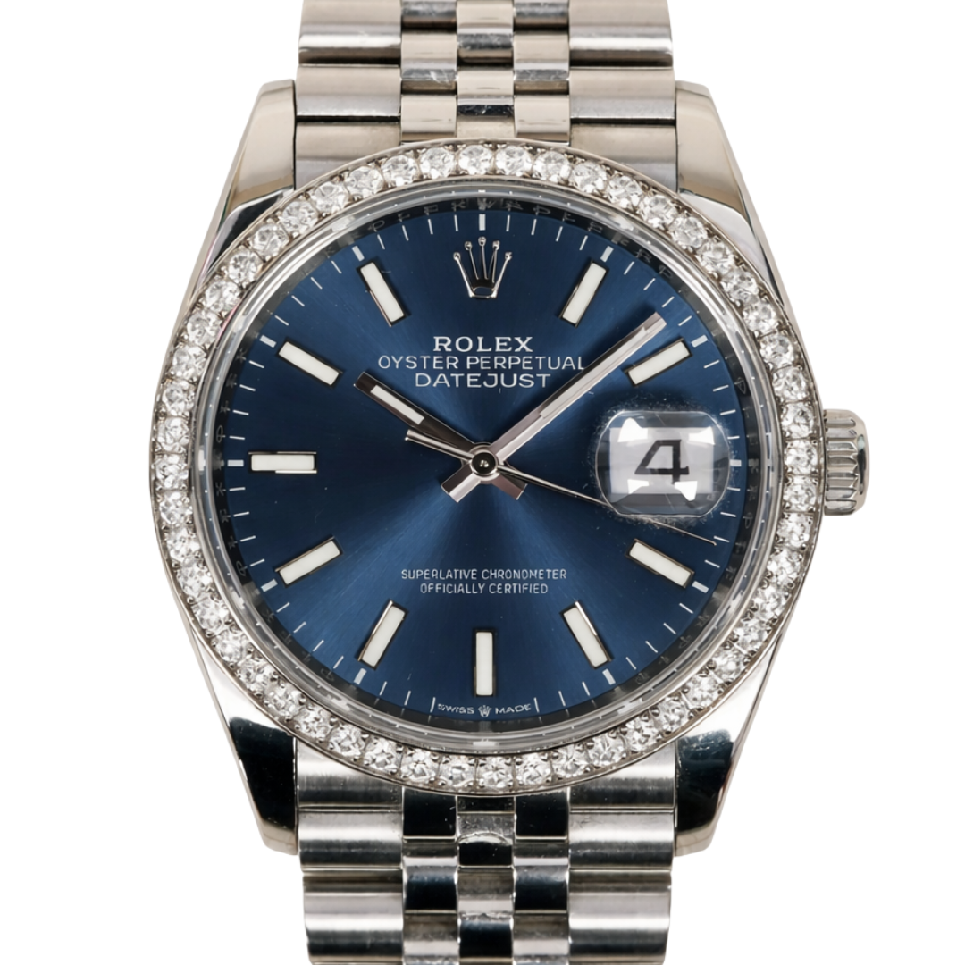 Diamond-bezel Datejust models with blue dials remain consistently sought after, combining timeless design with elevated luxury. Offered with its original full set of paperwork, presentation box, and a 12-month WLC warranty, this 126284RBR represents a well-balanced opportunity within the modern Rolex market.
