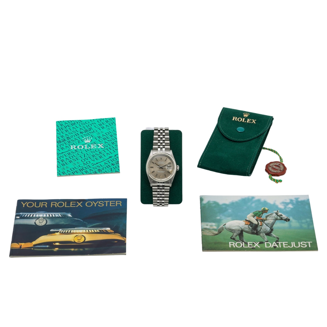 Powered by the Rolex calibre 3035 automatic movement, this model offers quickset date functionality and reliable chronometric performance, representing a significant evolution in the Datejust line. The 36mm Oyster case delivers a timeless wrist presence, equally suited to daily wear or to a considered vintage collection.