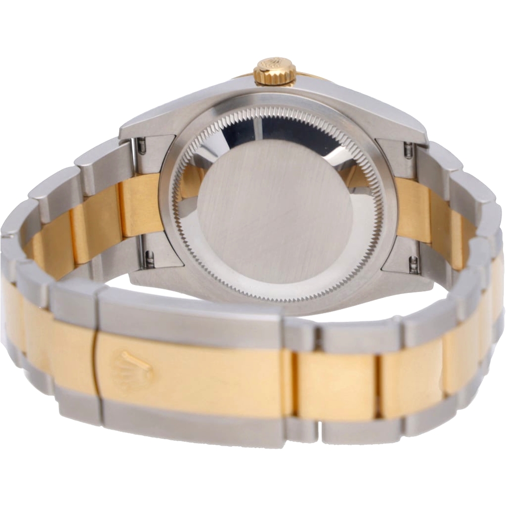 A Bi-Metal Rolex Datejust Watch, Stainless Steel and 18ct Yellow Gold with a Yellow Gold Fluted Bezel on a Champagne Dial.