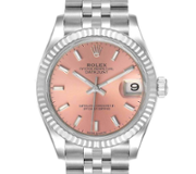 A Rolex Datejust 31, reference 278271, presents a refined bi-metal configuration combining stainless steel with 18ct Everose gold, offering a balanced blend of durability and warmth. The 31mm Oyster case is paired with a fluted Everose gold bezel, framing a rich chocolate dial that delivers depth and contrast while remaining unmistakably modern.