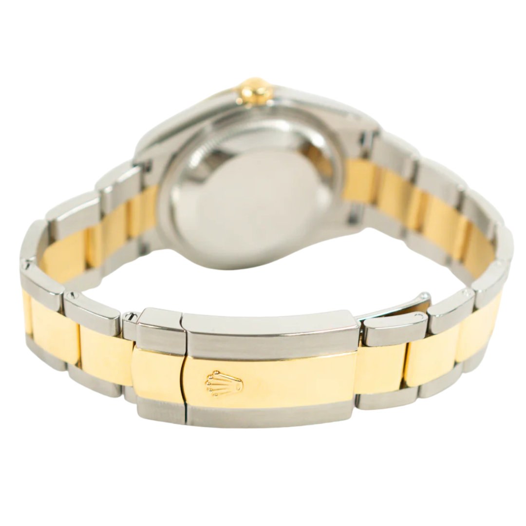 A Rolex Datejust 126233 in stainless steel and 18ct yellow gold, featuring the striking champagne Jubilee dial adorned with the iconic repeating Rolex motif. This highly distinctive dial is complemented by original factory diamond hour markers, adding a refined brilliance that enhances its visual depth without compromising the classic Datejust aesthetic. The 36mm Oyster case is paired with a fluted yellow gold bezel, creating a timeless and recognisable profile that has defined the model for decades.
