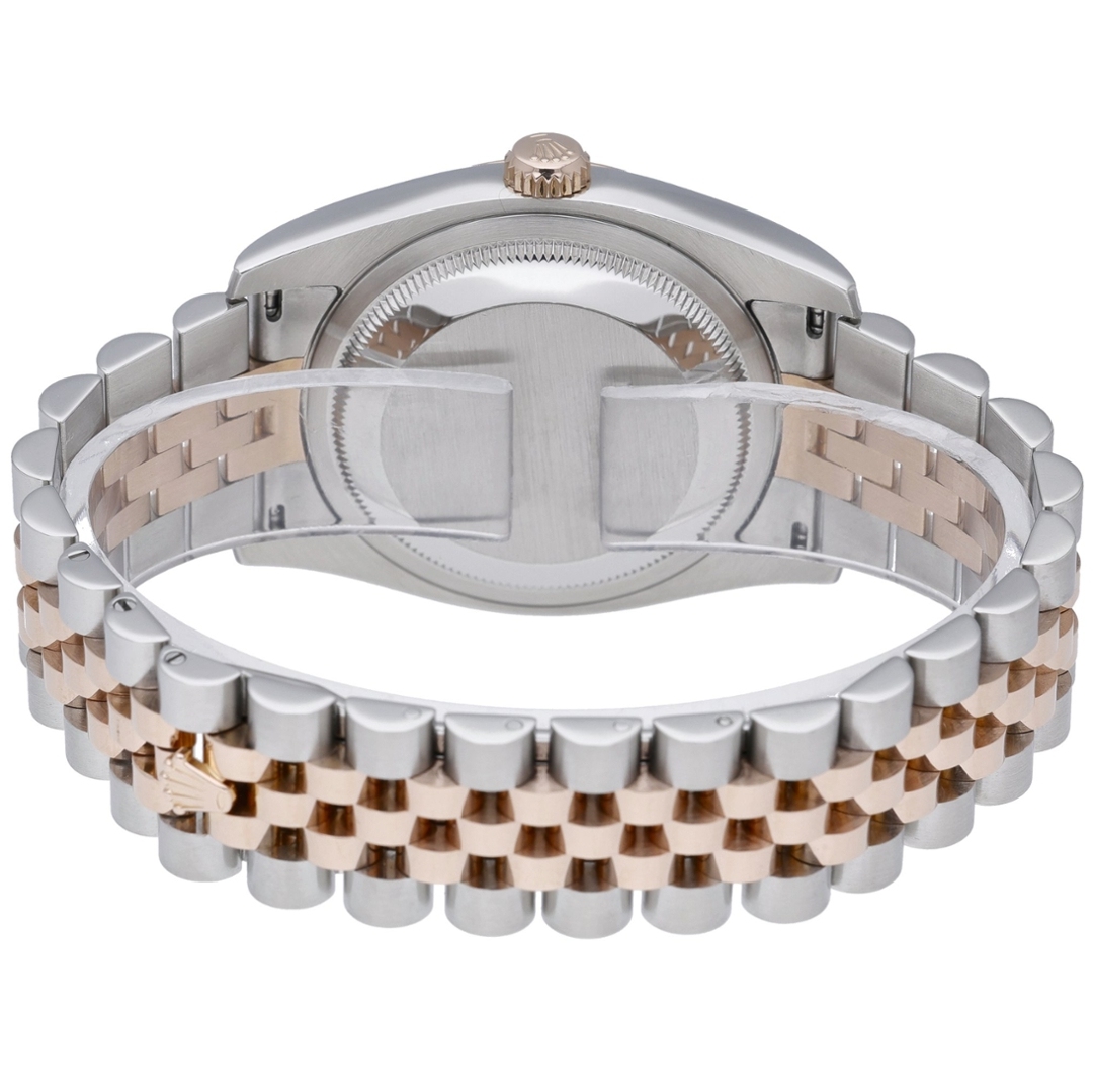 At its core lies the highly regarded Rolex Calibre 3135 automatic movement, a self-winding mechanical engine celebrated for its precision, durability, and reliability. Equipped with a paramagnetic blue Parachrom hairspring, the Calibre 3135 offers exceptional resistance to shocks and temperature variations, ensuring dependable timekeeping in any setting. The signature Jubilee bracelet, combining rose gold and stainless steel links, delivers both comfort and refinement in equal measure.
