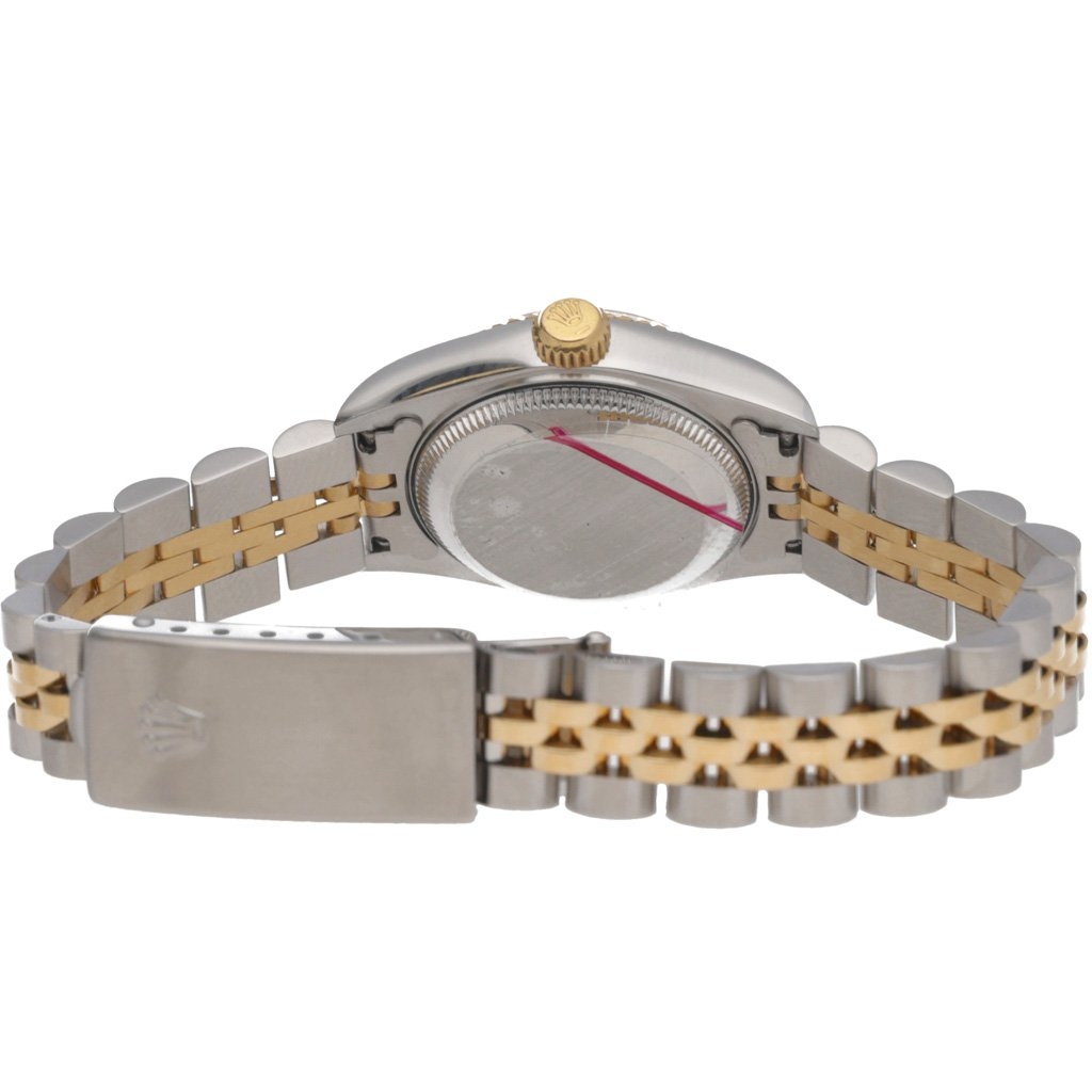 A Bi-Metal Rolex Datejust, reference 69173, beautifully blends classic design with timeless luxury. Crafted from stainless steel and 18ct yellow gold, this elegant 26mm model showcases Rolex’s signature craftsmanship and enduring appeal. The silver dial, adorned with original Rolex diamond-set hour markers, brings a refined brilliance to the design, perfectly complemented by the gold fluted bezel and matching Jubilee bracelet — an unmistakable hallmark of Rolex sophistication.