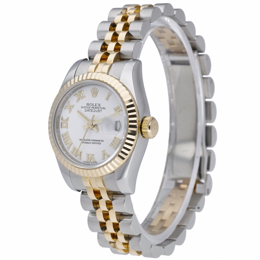 A Bi-Metal Rolex Datejust Watch, crafted from Stainless Steel & 18ct Yellow Gold and completed with a classic Yellow Gold Fluted Bezel on a crisp White Roman Numeral Dial. This timeless configuration delivers everything collectors love about the 26mm Datejust — understated luxury, everyday versatility and unmistakable Rolex presence.