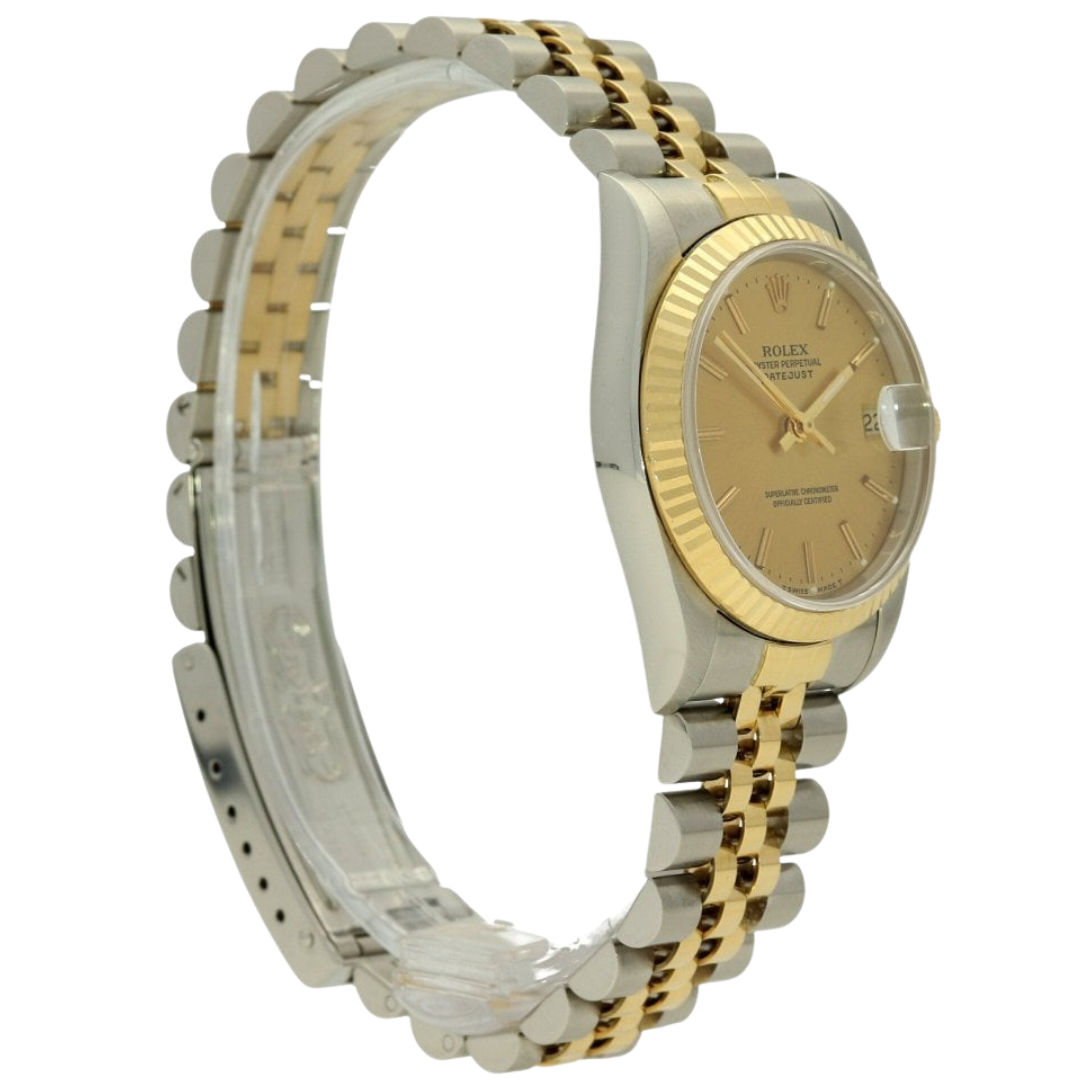 A Bi-Metal Rolex Datejust Watch, Stainless Steel & 18ct Yellow Gold with an 18ct Yellow Gold Bezel on a Champagne Dial
