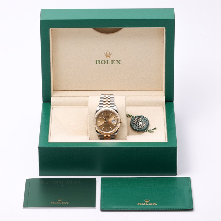 Presented in a luxurious box, this Bi-Metal Rolex Datejust watch is more than a timekeeping accessory; it's a statement of luxury, a testament to the enduring legacy of the Rolex brand. Certified by Rolex, it stands as a symbol of prestige and refinement, destined to captivate hearts and minds for generations to come.