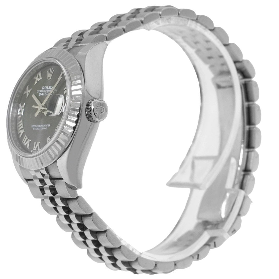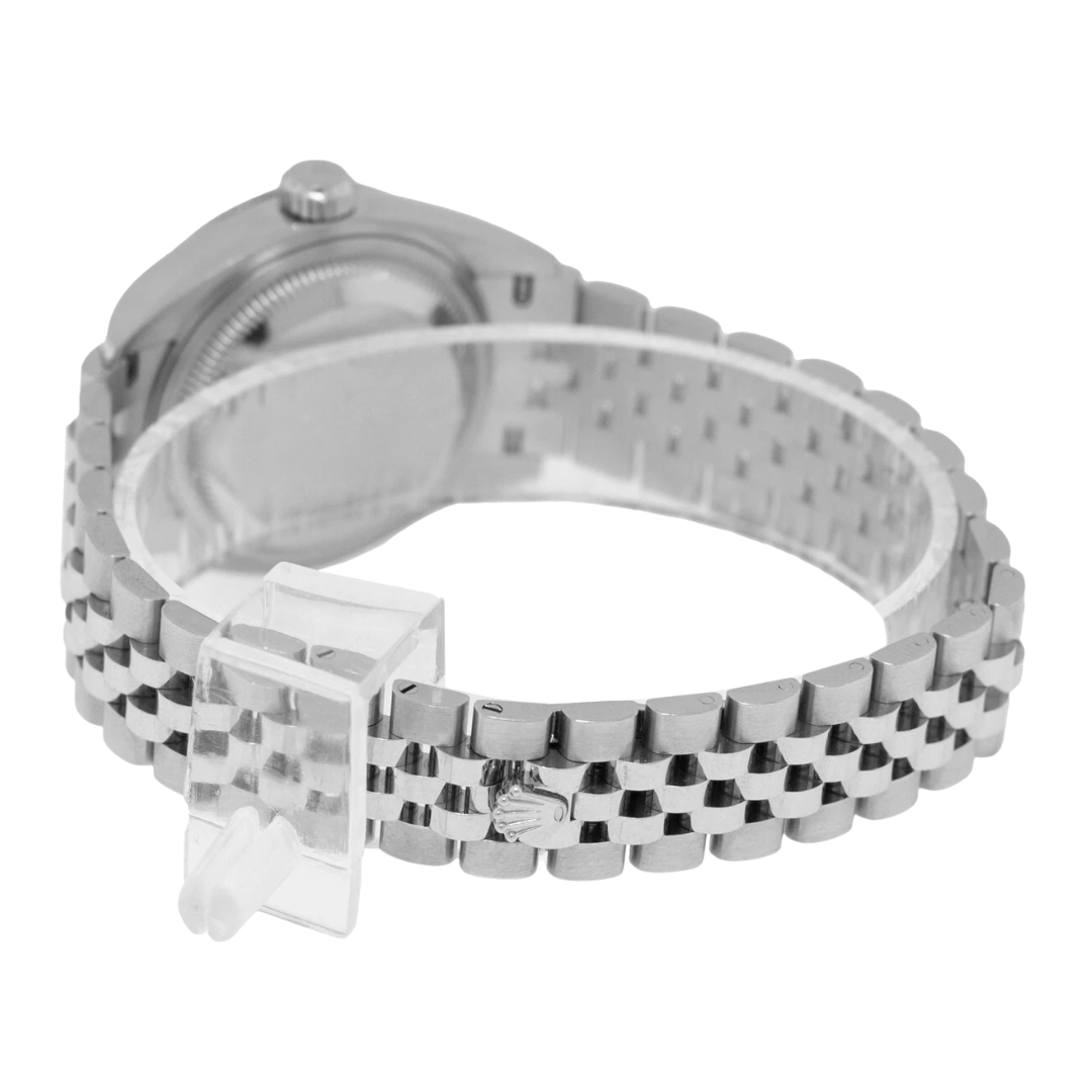 Powering this model is the Rolex Calibre 2236 automatic movement, an advanced mechanism engineered for precision and long-term stability. Its silicon Syloxi balance spring offers impressive resistance to shocks and magnetic fields, ensuring consistent performance in a variety of conditions. The Datejust’s hallmark date display, enhanced by the Cyclops lens, provides easy readability at a glance, further reinforcing the watch’s practicality.