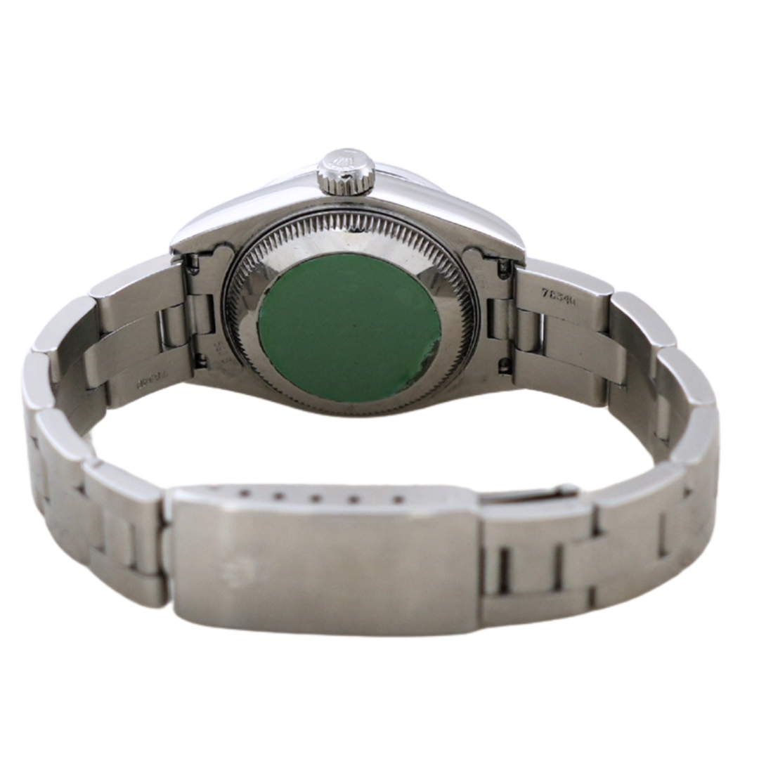 Beneath the dial beats the robust Rolex Calibre 2135 automatic movement, known for its reliability and precision. The case is fitted with a smooth bezel (original bezel included) and a matching steel Oyster bracelet with a folding clasp, combining functionality and clean lines. The upgraded mother-of-pearl dial adds a layer of individuality to the piece, while the factory Rolex crown and caseback preserve the watch’s authenticity and heritage.