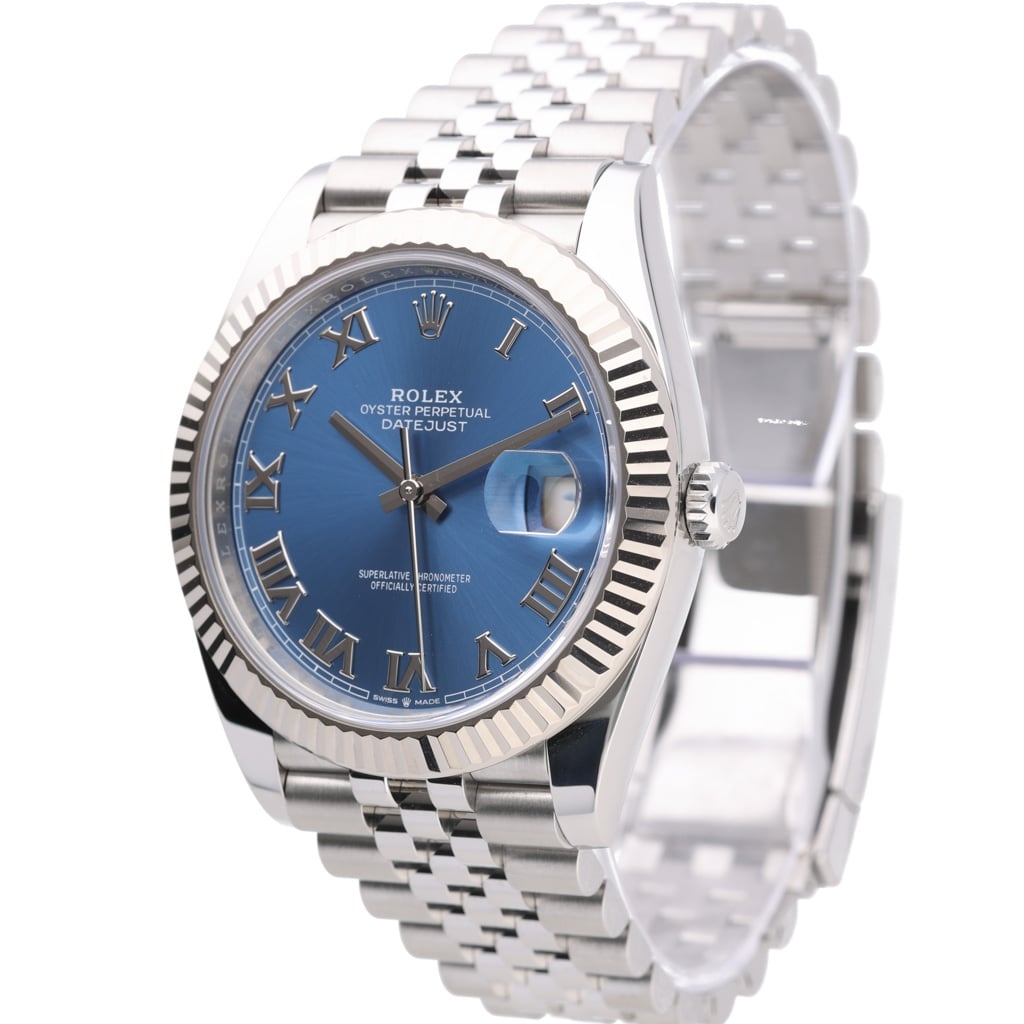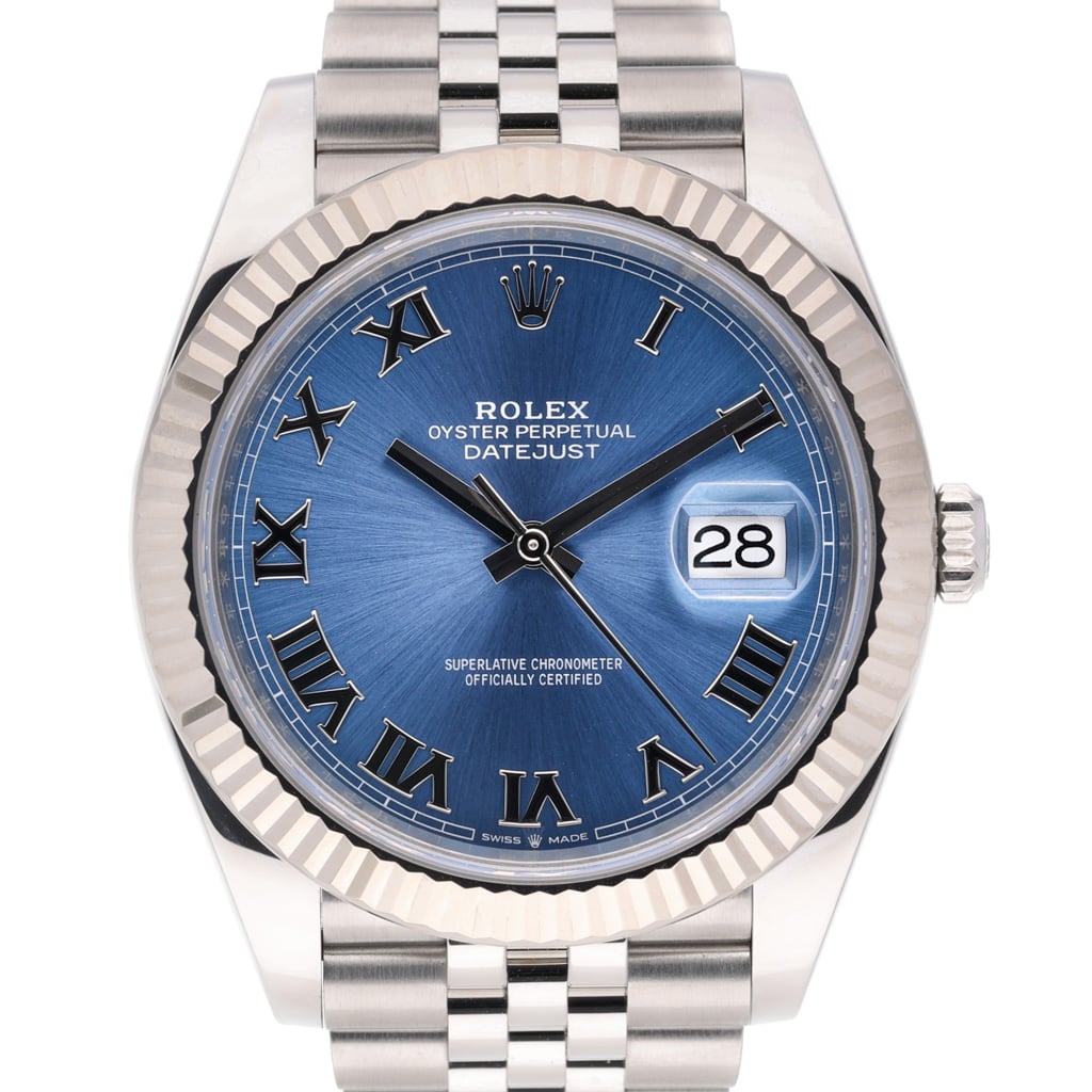 A Rolex Datejust 41 Watch, Stainless Steel on a Blue Dial.