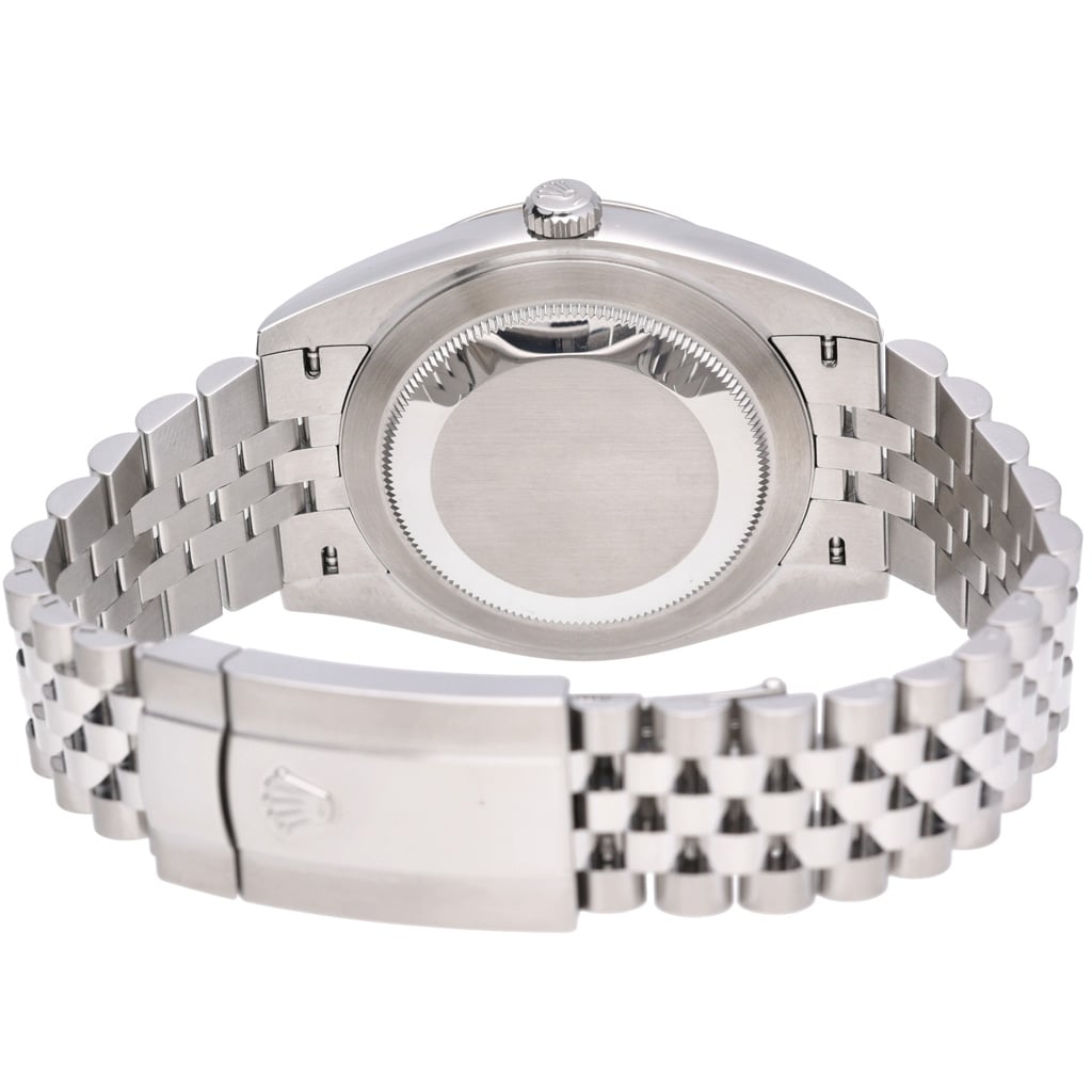 This Rolex Datejust 41 ref. 126300 presents a striking modern take on one of Rolex’s most recognisable designs. Crafted from robust stainless steel, the 41mm case offers strong wrist presence while remaining refined and wearable for daily use. The blue Roman dial shown here is particularly eye-catching, with a sunburst finish that shifts beautifully in changing light, complemented by applied Roman numerals and the classic Cyclops date window at 3 o’clock. Paired with the Jubilee bracelet, the watch achieves a perfect balance of contemporary elegance and classic Rolex style.