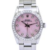 A Rolex Datejust Watch, Stainless Steel with an Afterset Diamond Bezel on an Afterset Mother-of-Pearl Dial with Diamond Numerals.