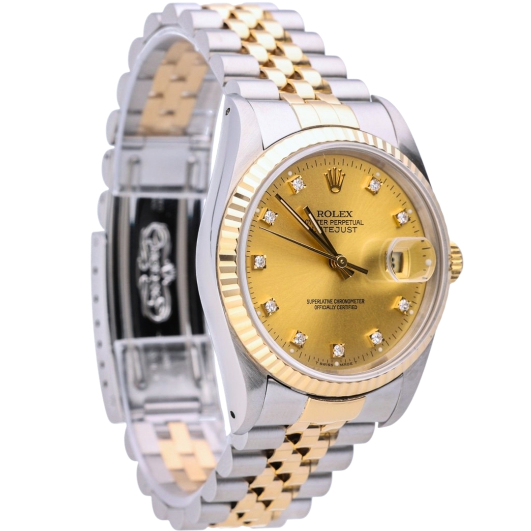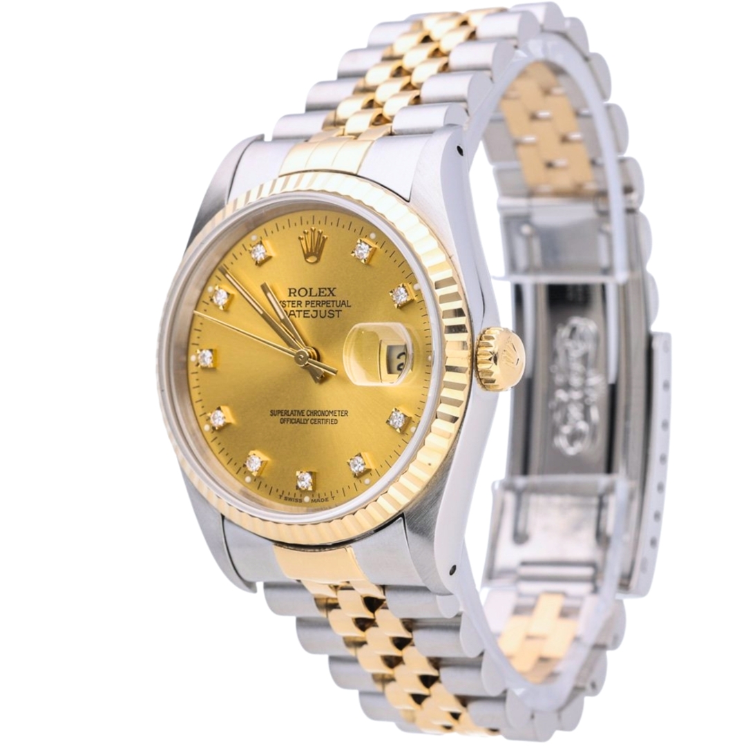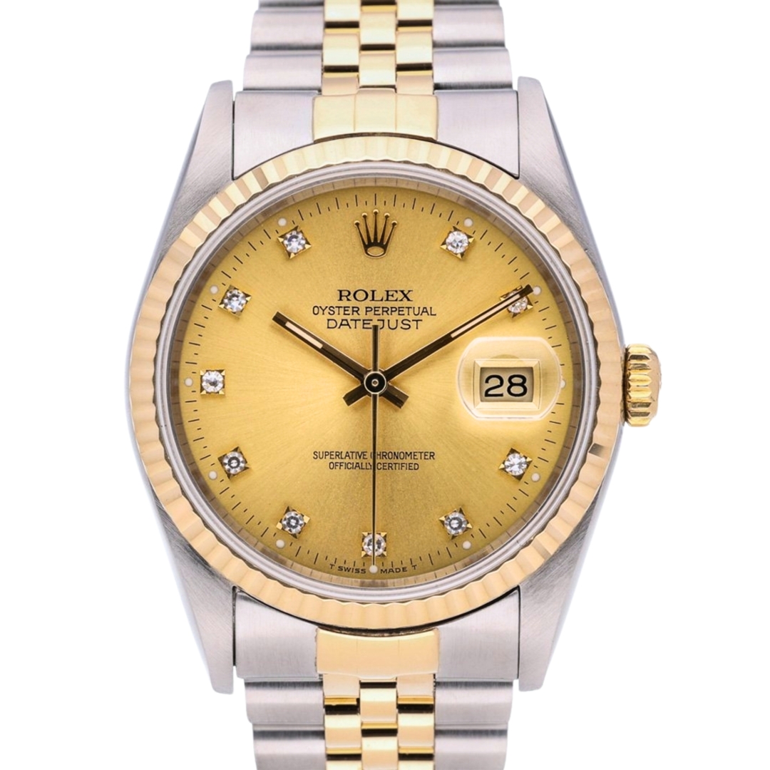 A Rolex Datejust Watch, Stainless Steel & 18ct Yellow Gold on a Champagne Dial with Original Rolex Diamond Numerals