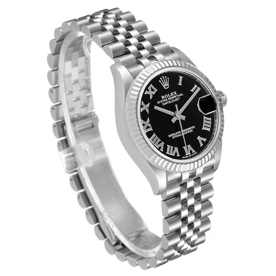 A superb example of the Rolex Datejust 31, this 2021 reference 278274 combines classic stainless steel construction with a striking black Roman dial, giving the watch a refined monochrome presence on the wrist. The white gold fluted bezel brings a crisp, familiar brilliance to the profile, framing the dial with the signature sparkle that sets the Datejust apart. Sized at 31mm, it offers an ideal balance between elegance and everyday versatility, perfectly suited to those who prefer a slightly larger midsize appearance without compromising refinement.