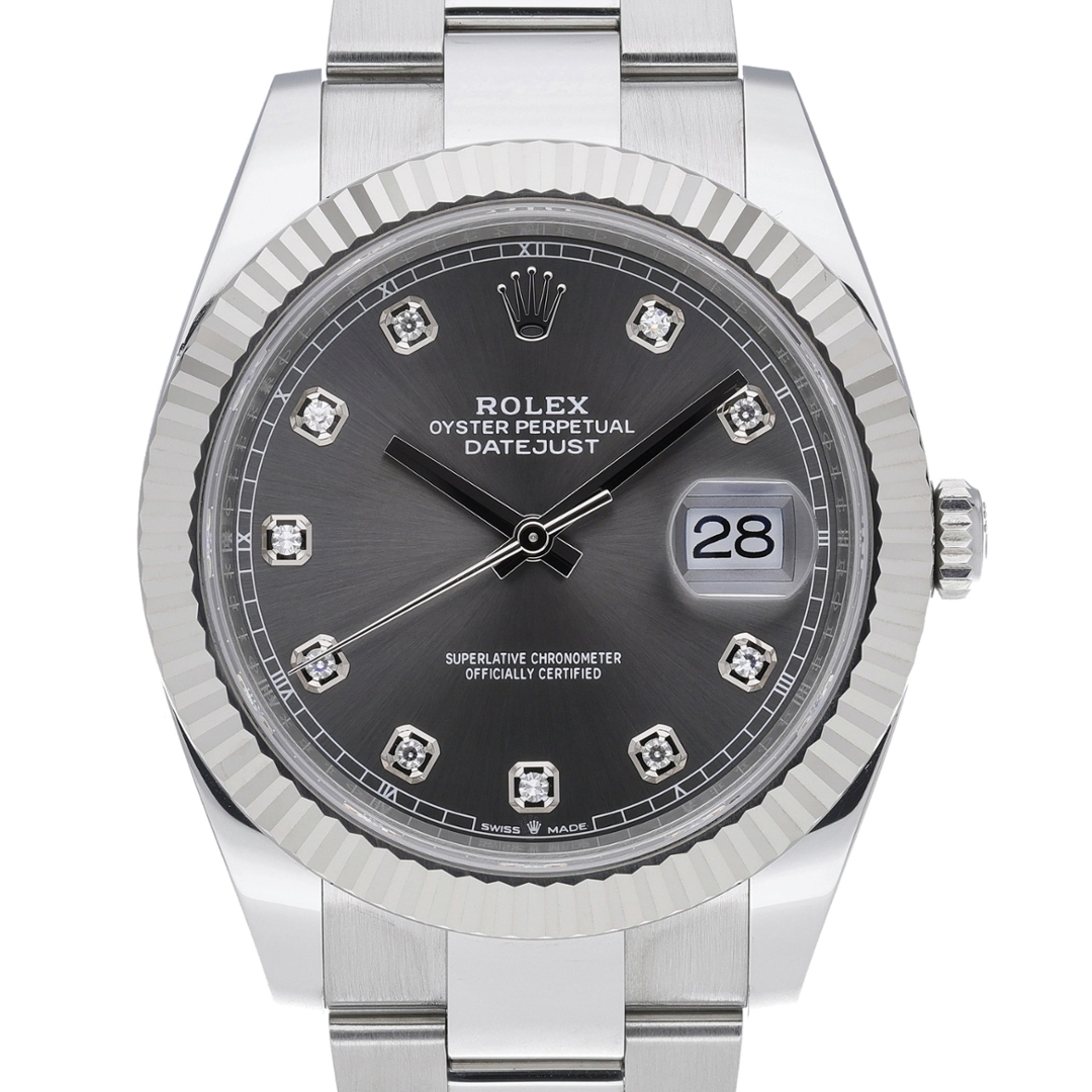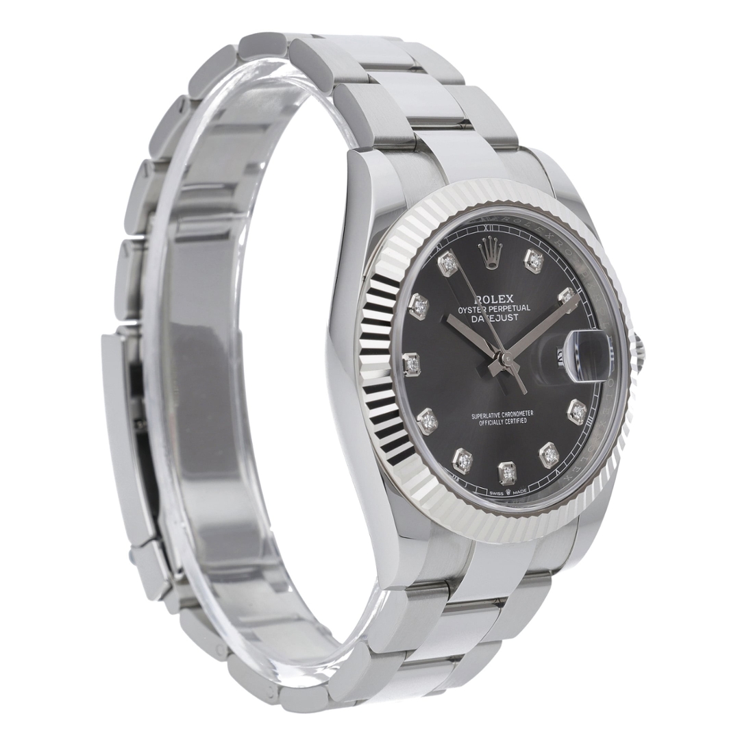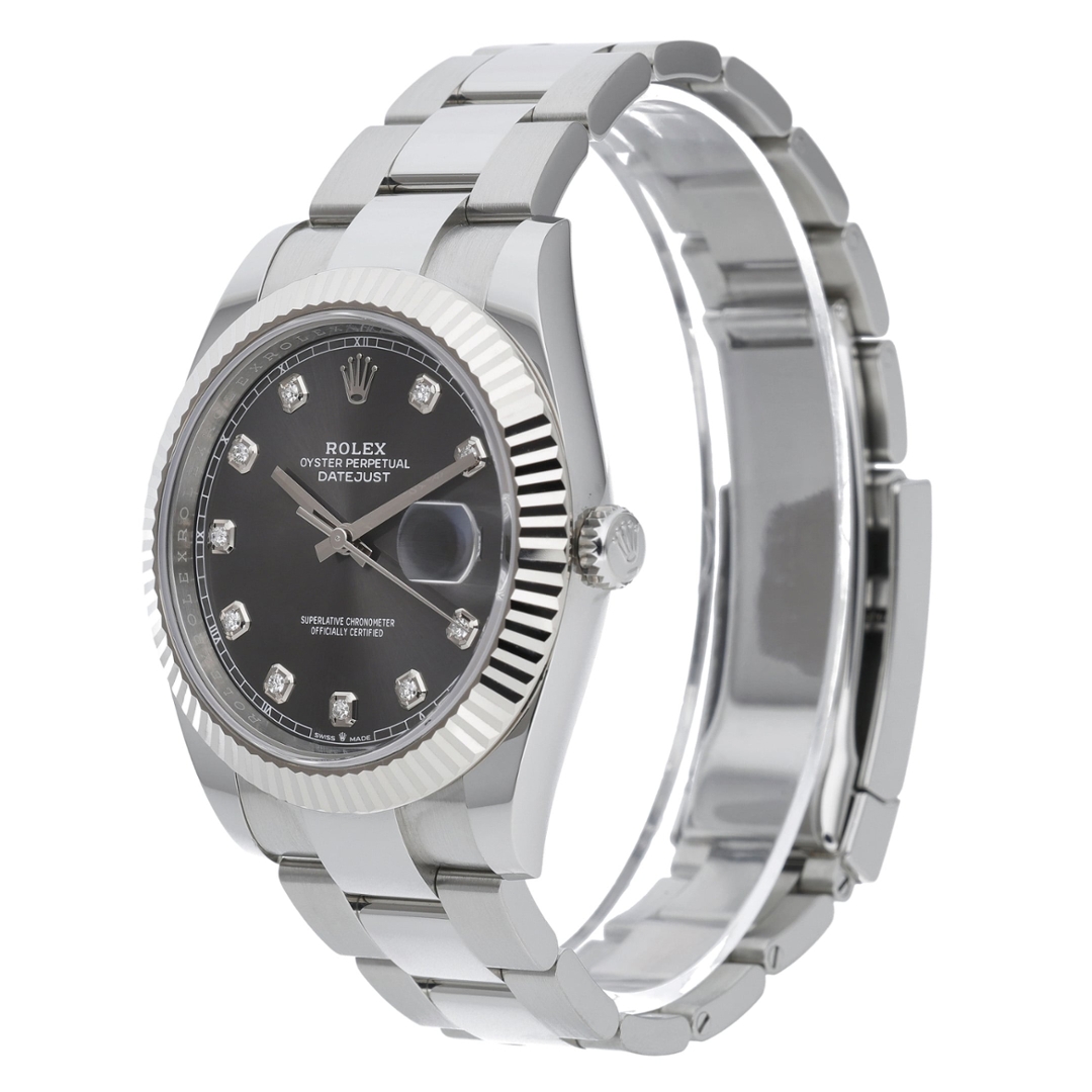 A Rolex Datejust 41 Watch, Stainless Steel with an 18ct White Gold Bezel on a Slate Dial with Original Rolex Diamond Numerals