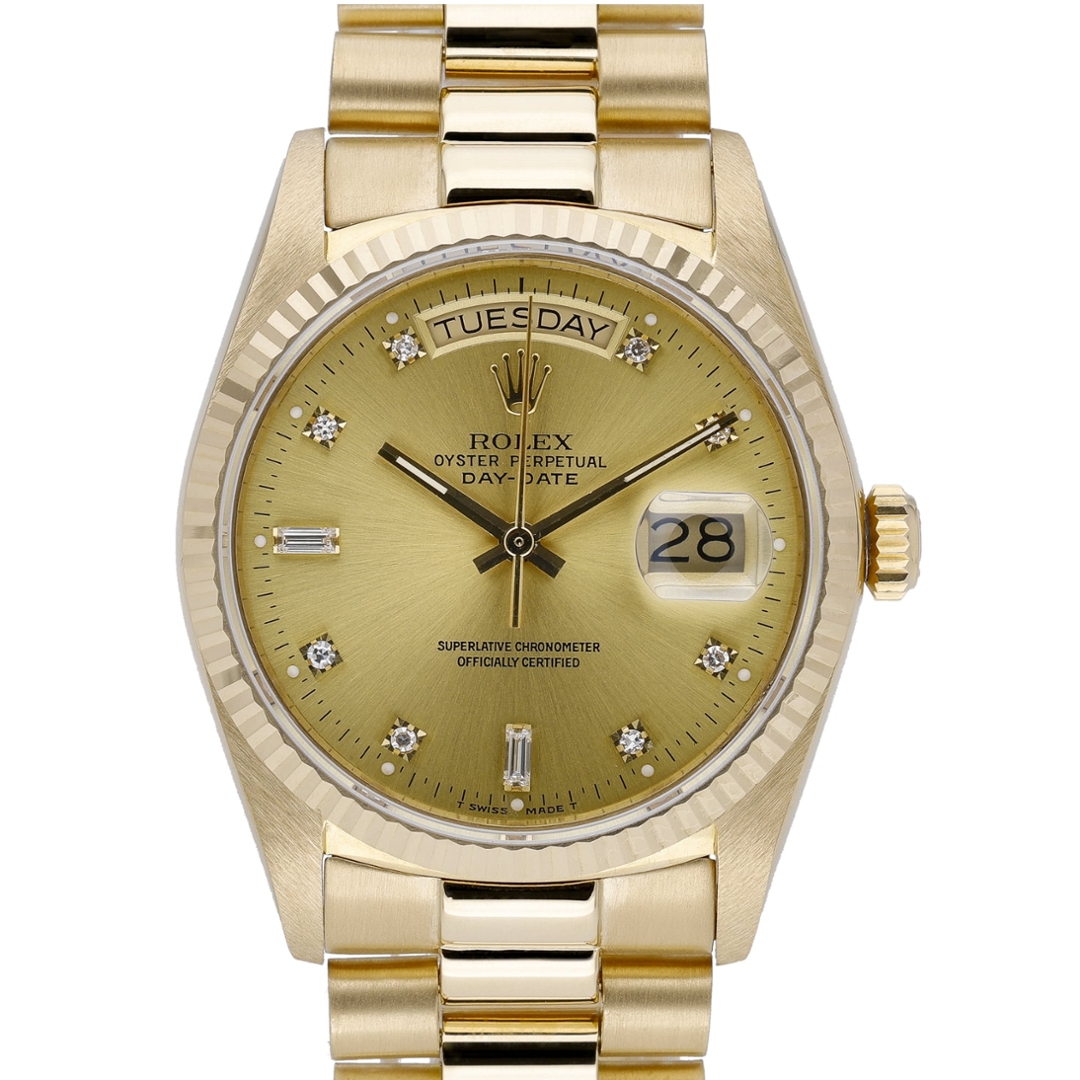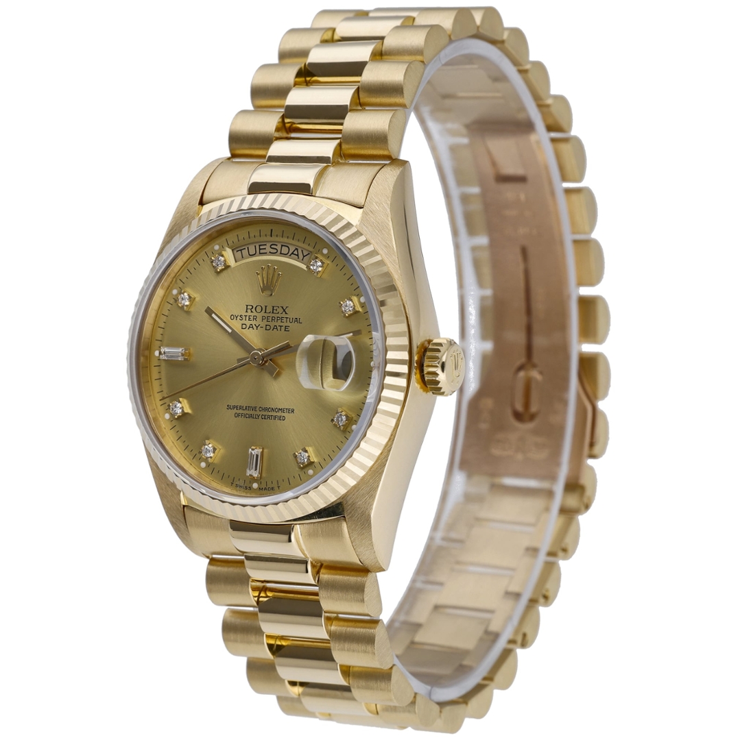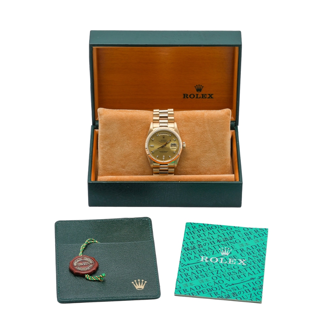 A Rolex Day-Date Watch, Full 18ct Yellow Gold on a Champagne Dial with Original Rolex Diamond Numerals
