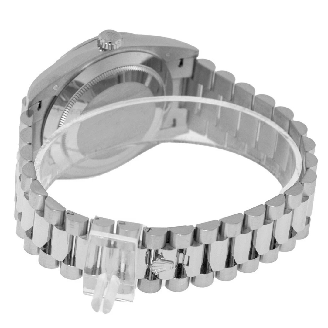 Powered by Rolex’s advanced automatic movement, the Day-Date 40 delivers exceptional precision and reliability. The 40mm case sits confidently on the wrist without feeling oversized, and the President bracelet provides the signature comfort and elegance that has defined this model for decades. The iconic day aperture at 12 o’clock and the date window at 3 o’clock make this watch instantly recognisable and one of Rolex’s most outstanding horological achievements.