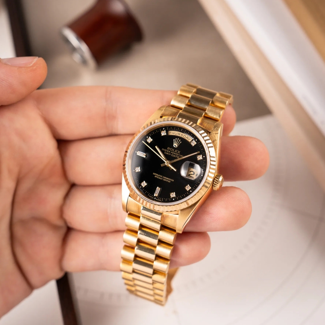 As the value of precious metals continues to climb and vintage Rolex demand remains at an all-time high, this Day-Date offers not only enduring style but a highly dependable asset with strong long-term investment potential.