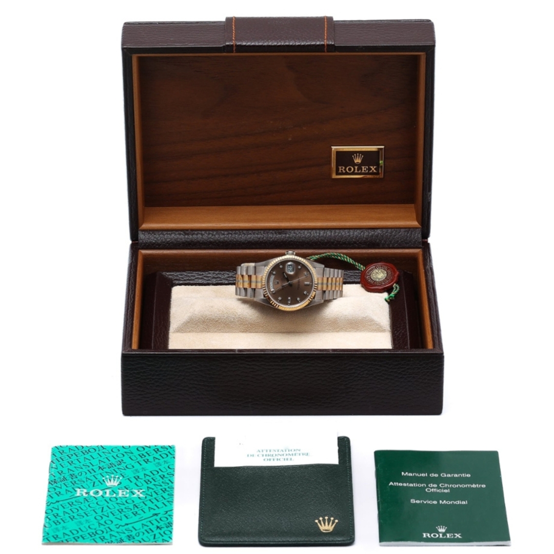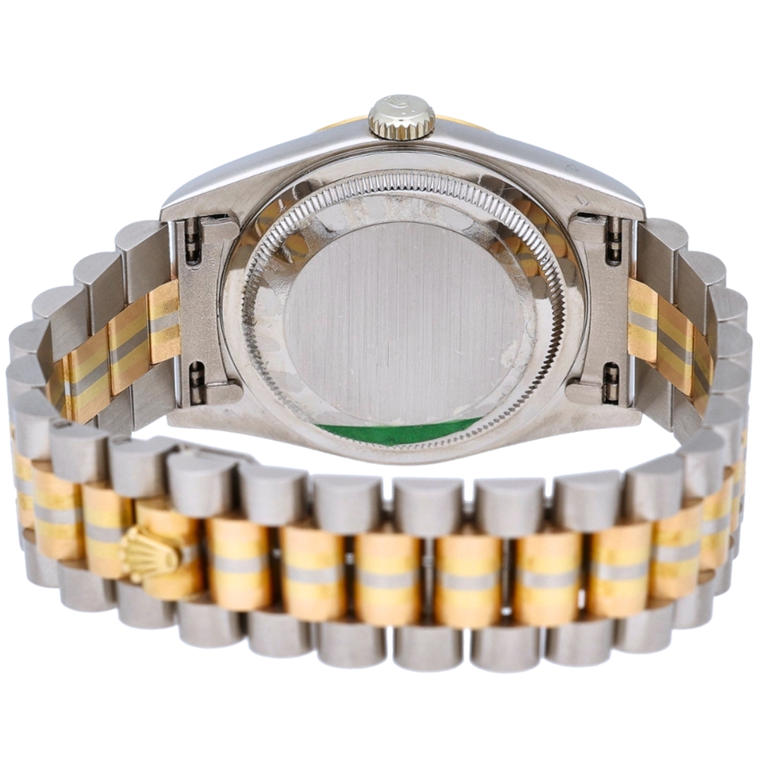 Powered by the Rolex Calibre 3155 automatic movement, this model delivers instantaneous day and date change alongside chronometer-certified precision. The 36mm case offers classic Day-Date proportions, balancing presence with everyday wearability.