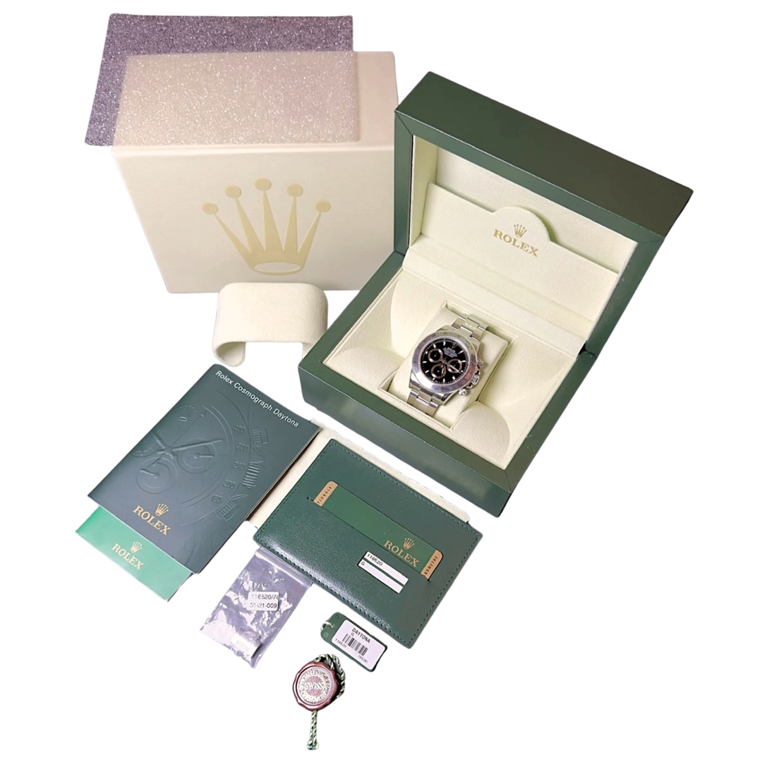 Described as immaculate, fully stickered, and new old stock, this watch offers a level of preservation that dramatically elevates its collectible appeal. Boxed, certified, and accompanied by a 12-month WLC warranty, it presents a rare opportunity to acquire a genuinely investment-grade Daytona — a reference long recognised as a modern icon and a cornerstone for any serious Rolex collection.
