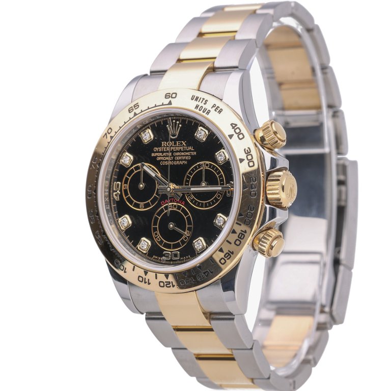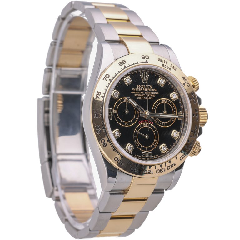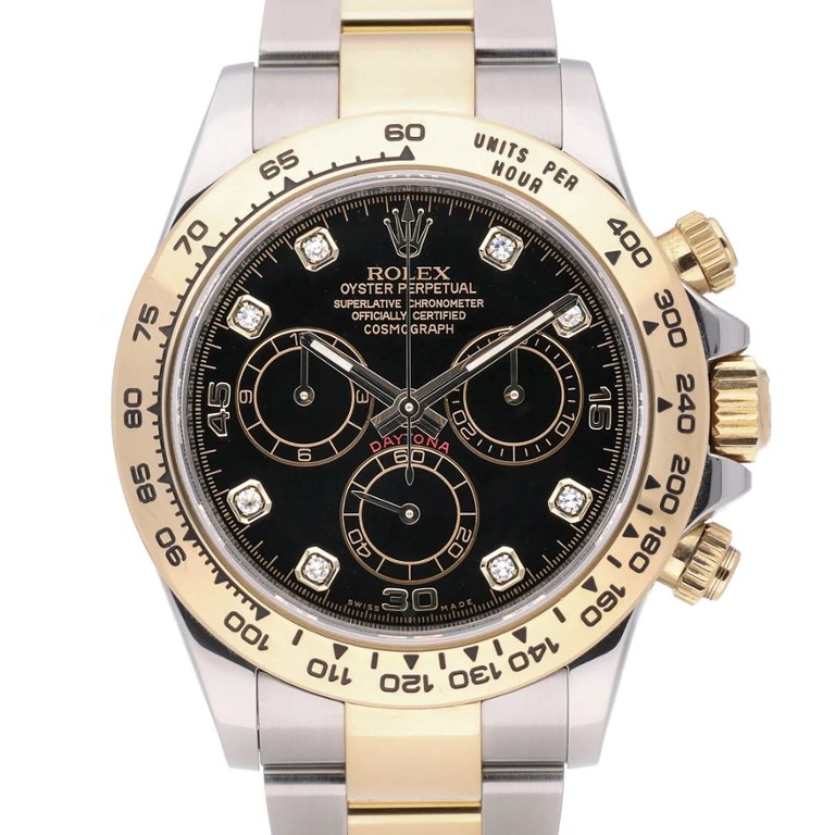 A Bi-Metal Rolex Daytona Watch, Stainless Steel and 18ct Yellow Gold with a Black Original Diamond Dial.