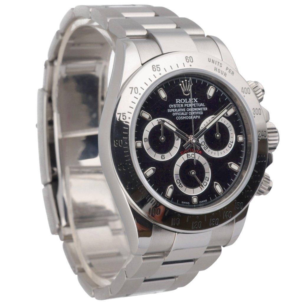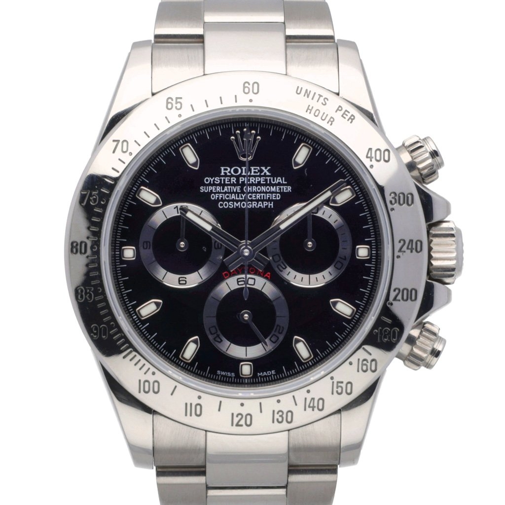 A Rolex Daytona Watch, Stainless Steel with a Black Dial.